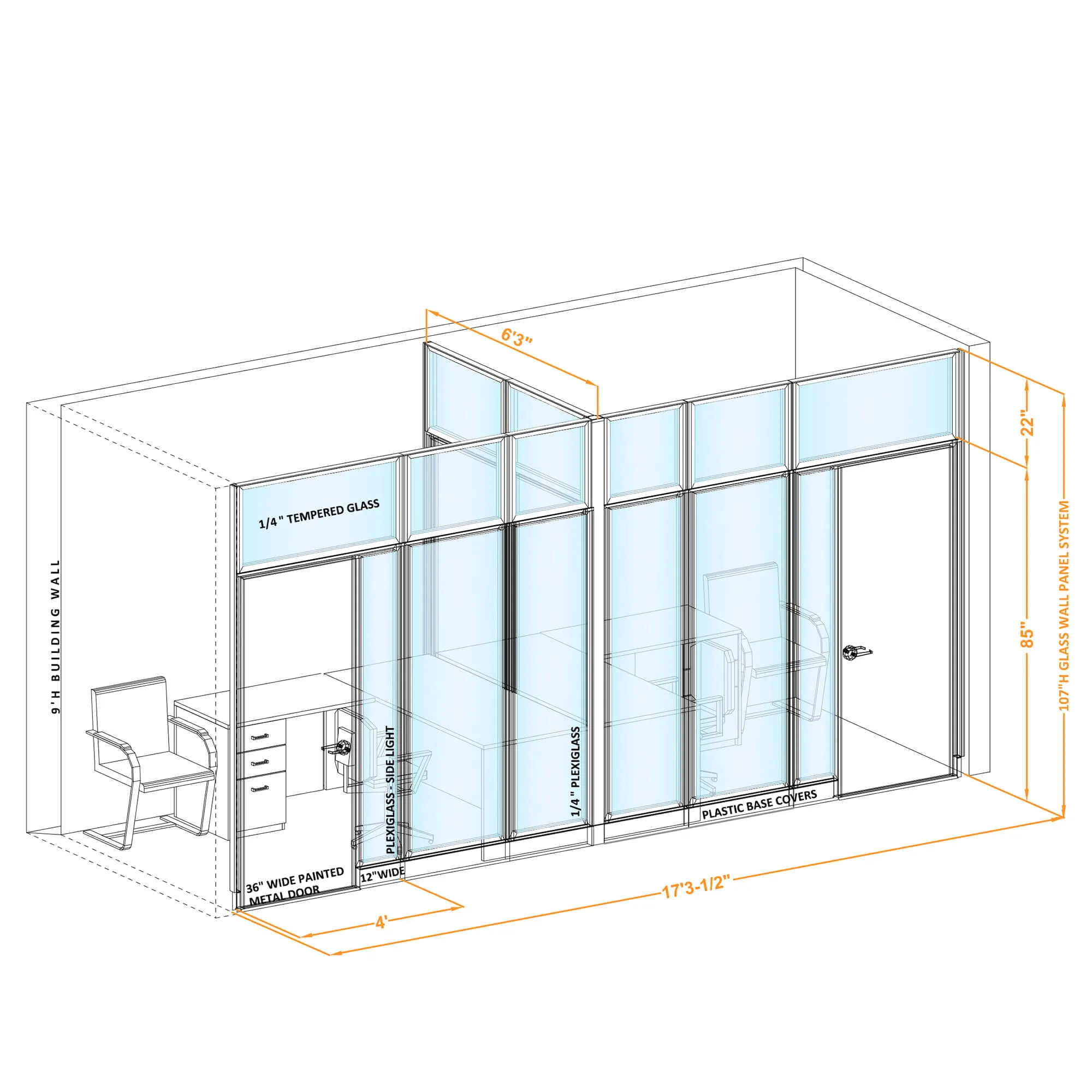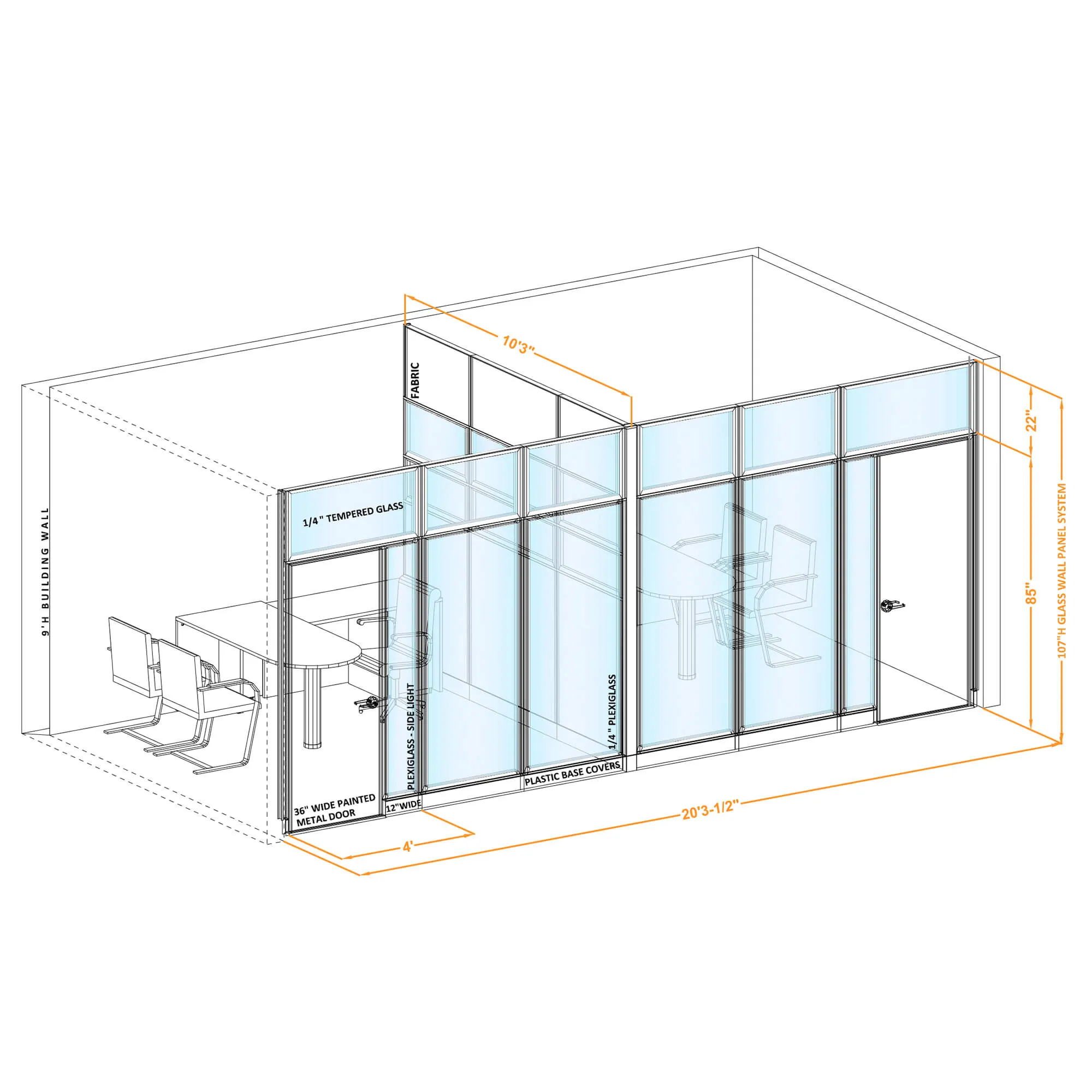 107”H interior dividing walls work great with 9ft ceilings for a nearly seamless floor-to-ceiling appearance, or for extra high ceilings environments where Series 7 will not reach the height desired.