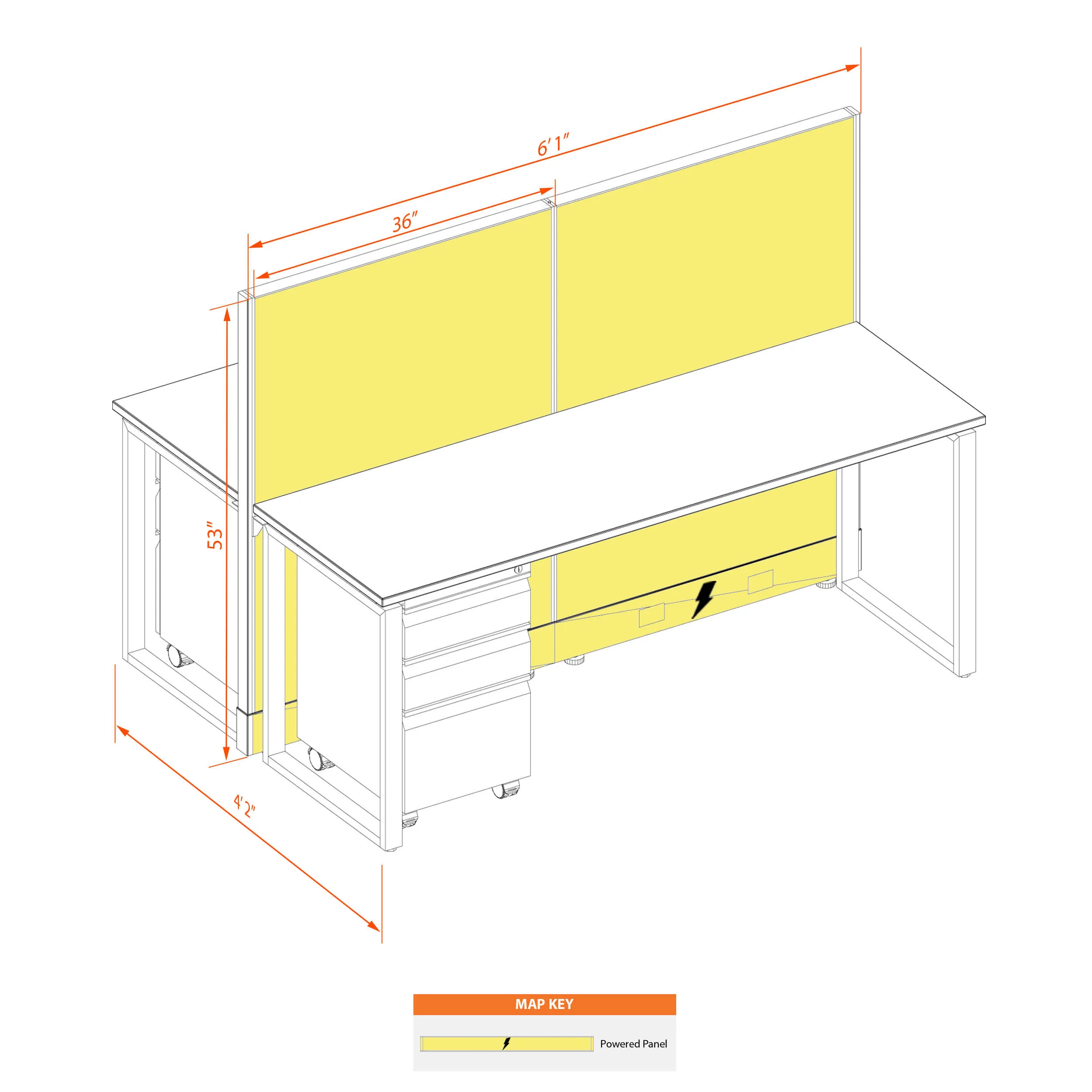 Open Plan Workstations 53H 2pack Cluster Powered