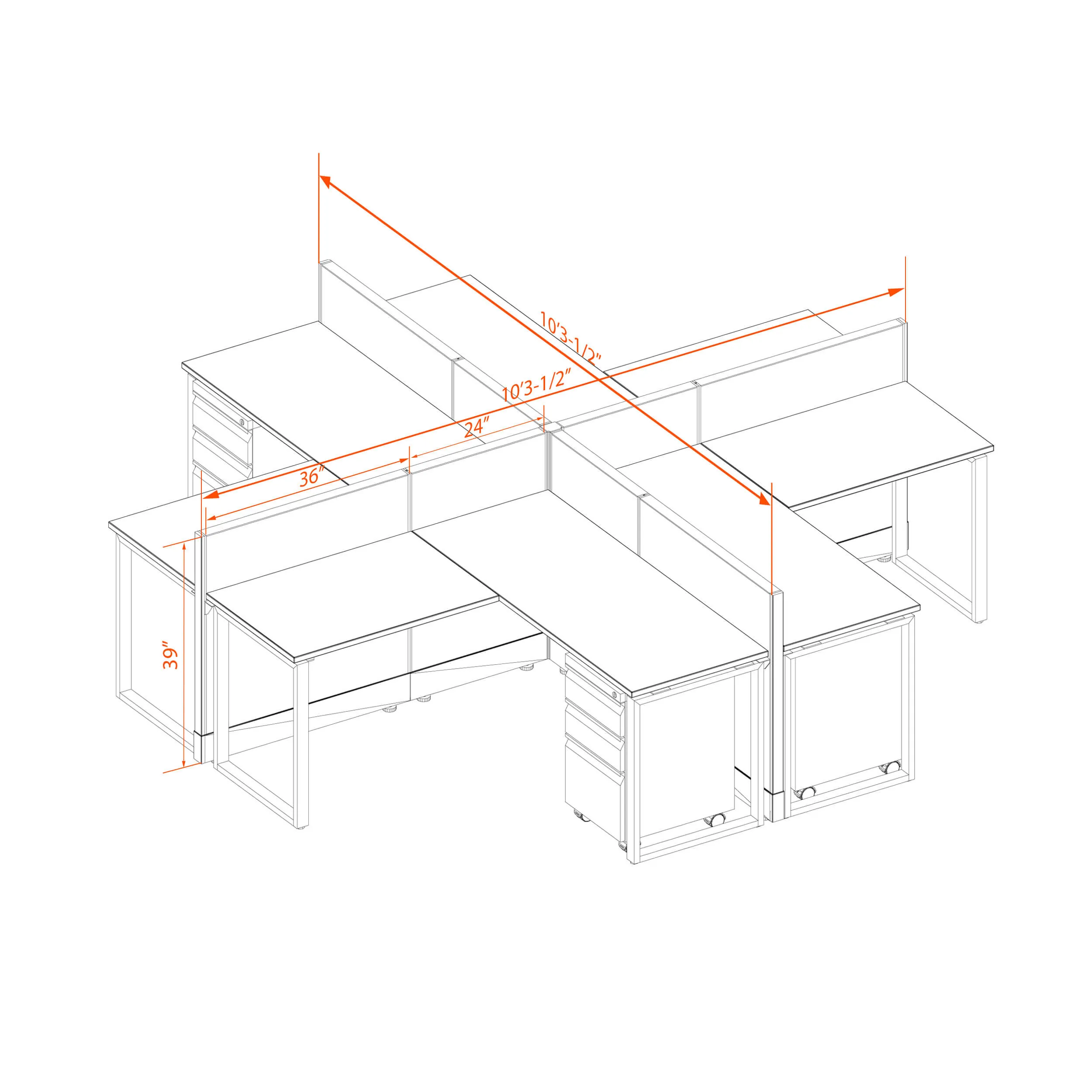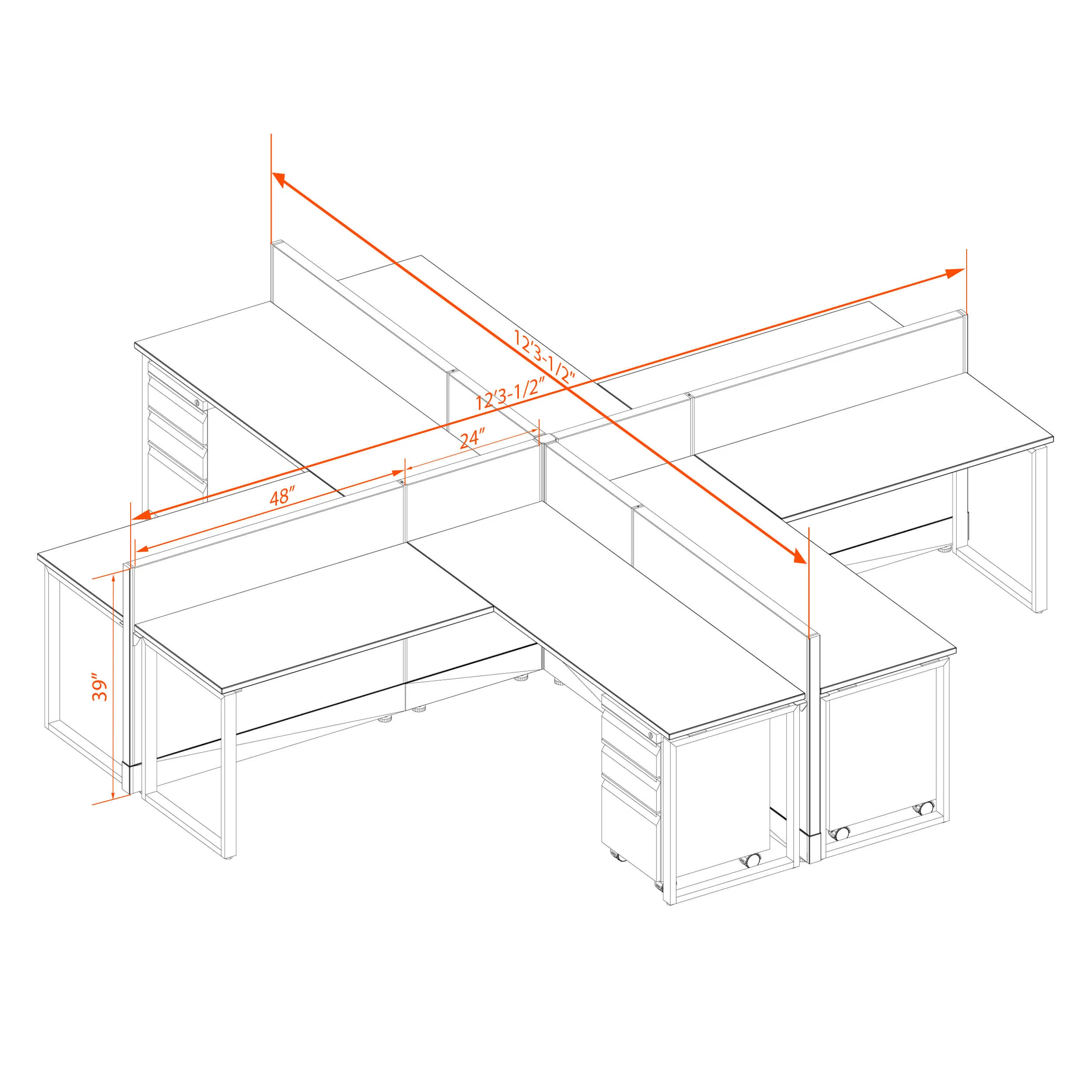 Open Office Workstation 39H 4pack X Cluster Unpowered