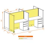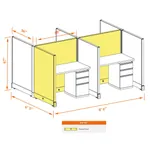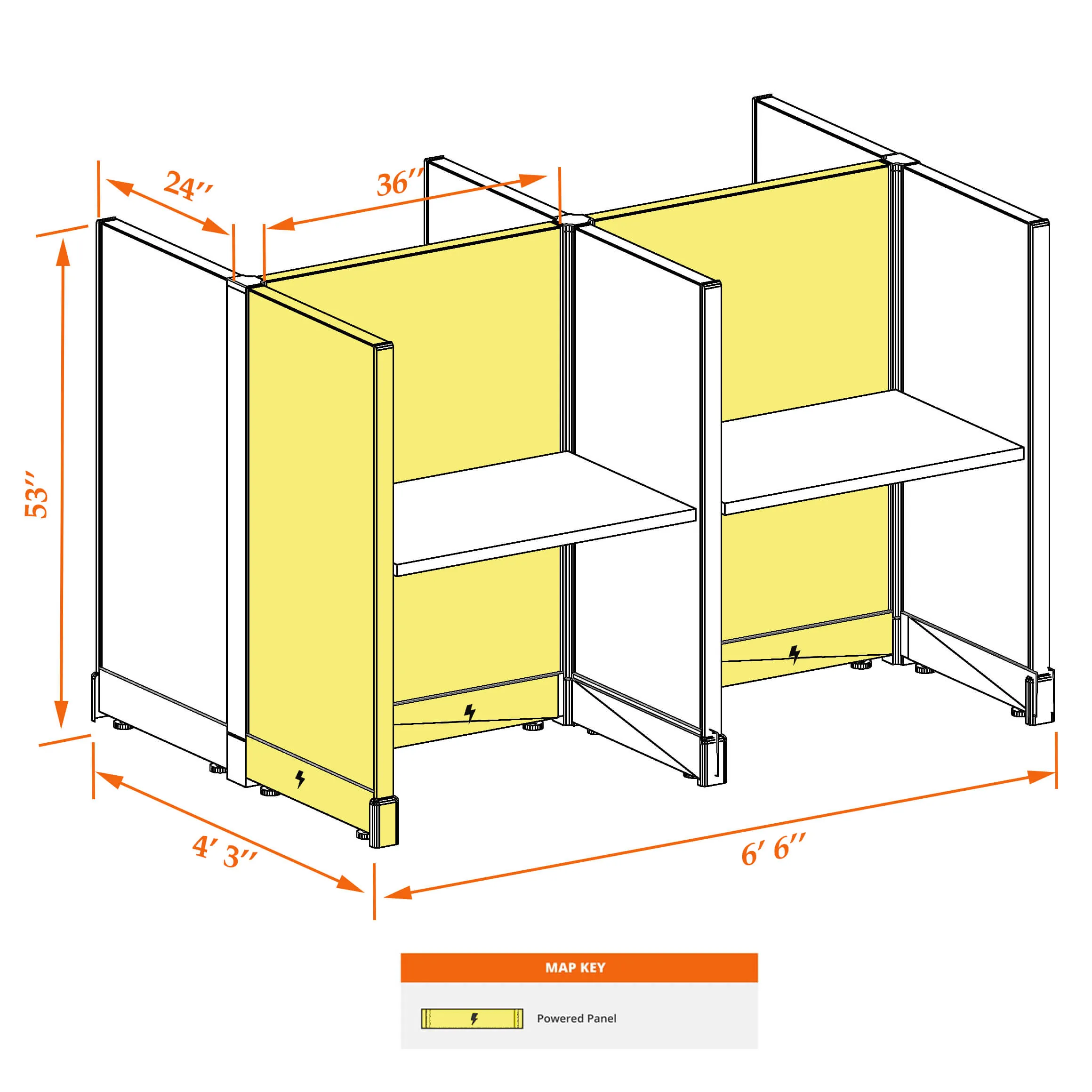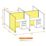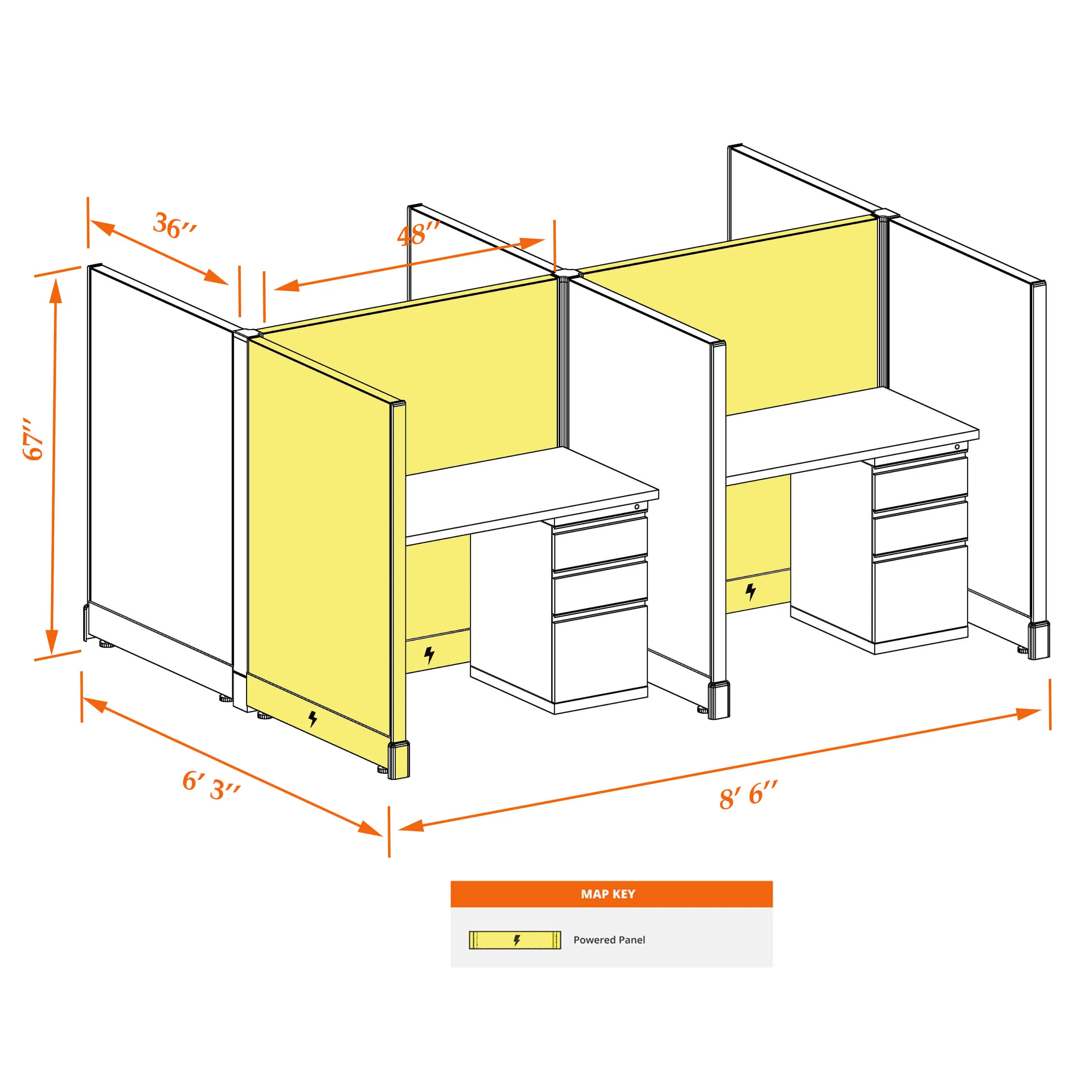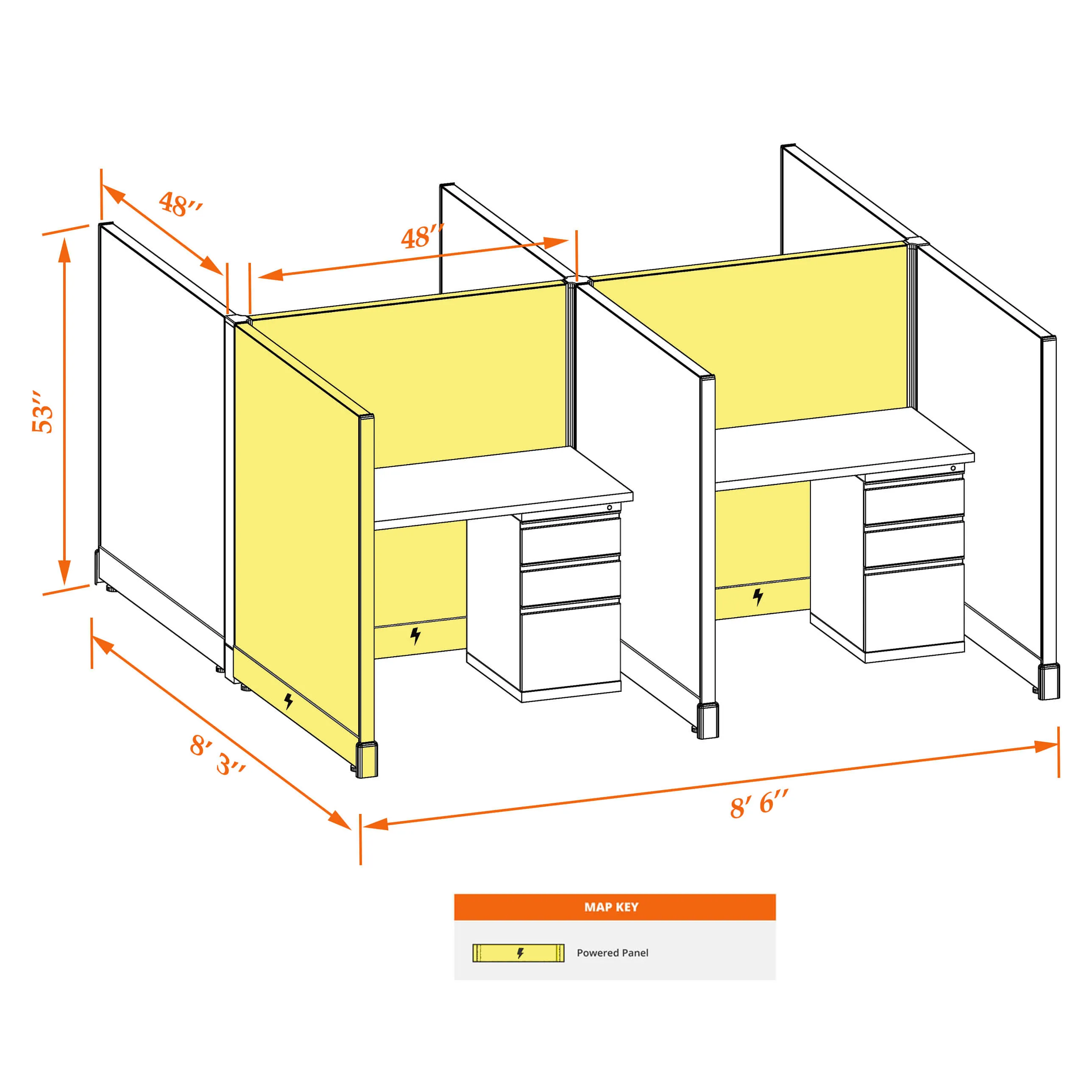 This particular configuration includes 4 cubicle with 53 inch panel height. For workspace area you can choose 2’x4’, 2’x3’, 3’x4’ or 4’x4’ depending on available space. These cubicles are powered, so you can plug your electronic devices directly into the panel power sockets.