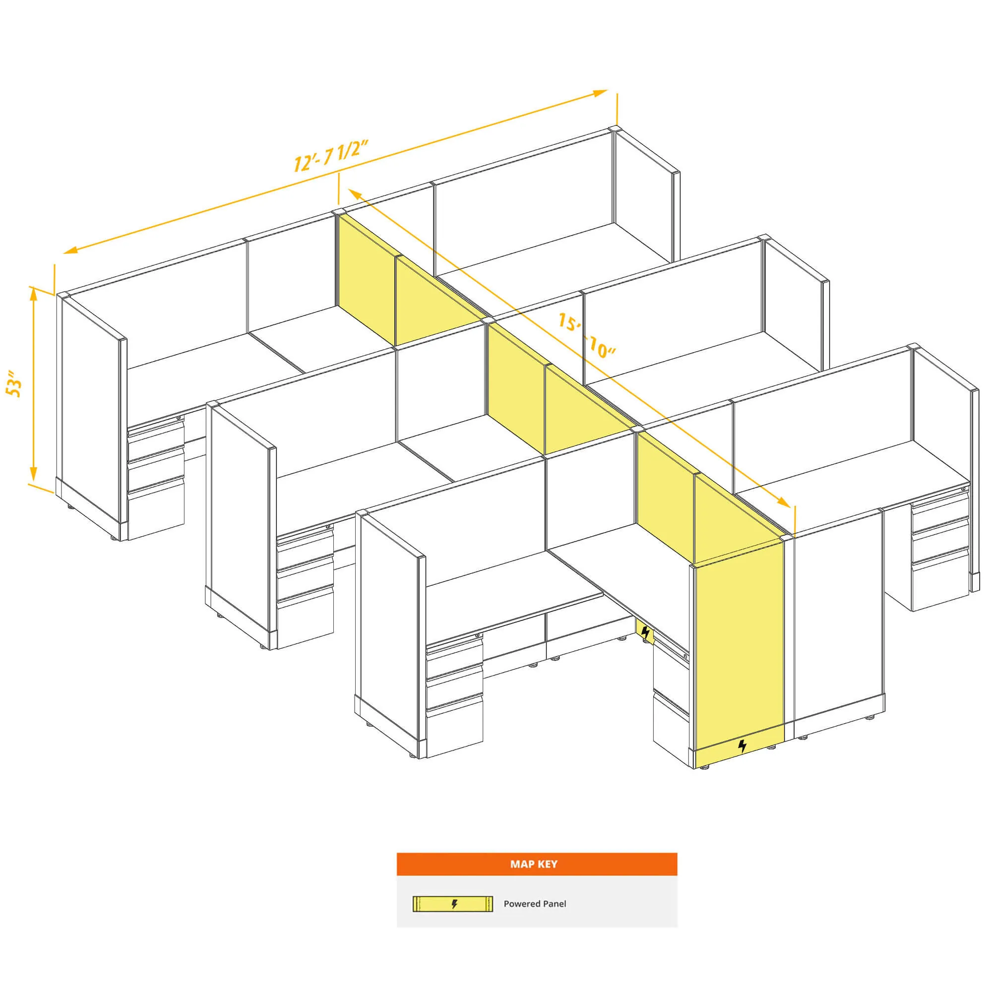 Office Cubicles 53H 6Pack Cluster