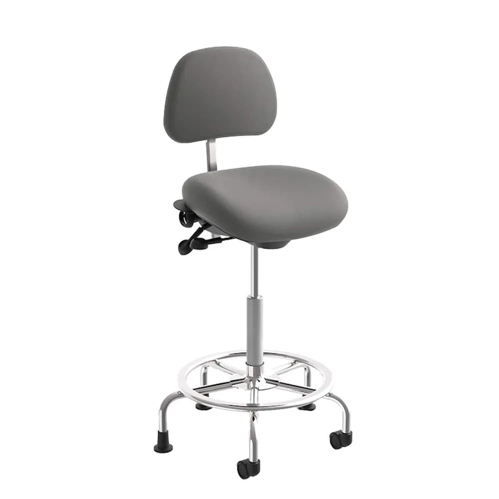 This sit stand stool with footrest has been designed to be the ideal counter height task chair and allows for various postures throughout the day, reducing unnecessary strain on any specific group of muscles. Its front casters provide easy mobility around the room and a No-Slip Strip incorporated on the seat helps prevent users from slipping while in the perched position. This versatile office furniture piece is ideal for locations such as laboratories, pharmacies, hospitals and other counter workstations.