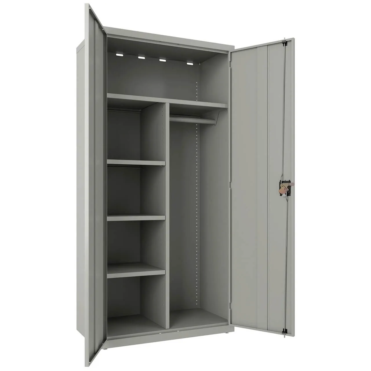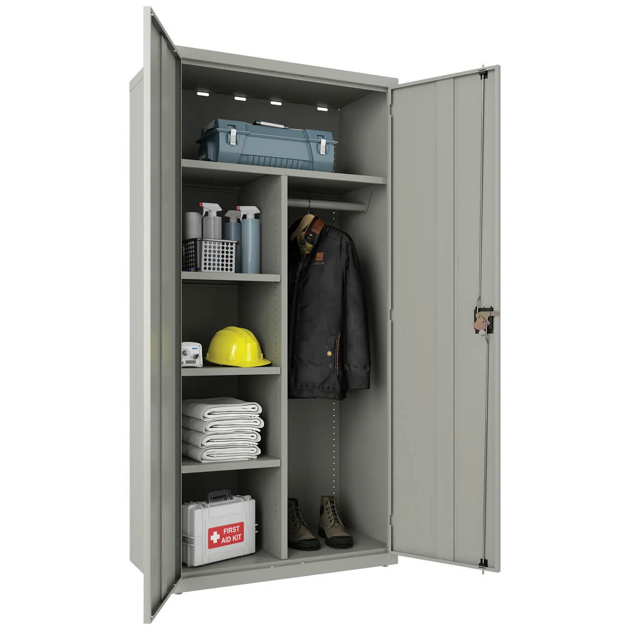 The Office Wardrobe Cabinet Combo was designed with simple-functional lines, neutral shades of finishings, and robust construction while offering flexible storage. All these characteristics make this item a versatile and space-efficient storage piece for numerous purposes: industrial, hospitality, education, among others.