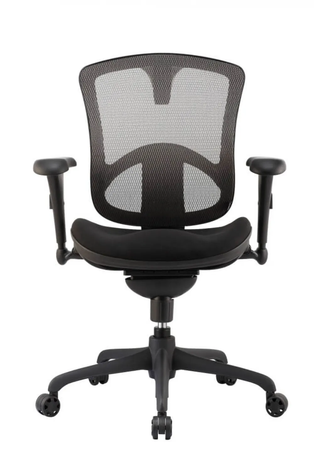 This black office chair offers exeptional comfort and support for a busy and long work day. The adjustable mesh back provides breathability and proper air flow. Choose the right chair today and improve your position throughout your work day!