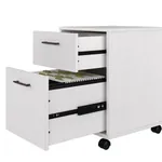 Mobile File Cabinet fits under the L office desk for convenient access to paperwork and office supplies.