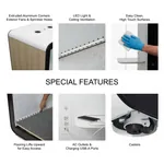 Energy consumption is kept low with an integrated Occupancy sensor, powering up the 12V DC LED Light Strip and 2 Ventilation Ceiling Fans, offering optimum light and interior air flow (rated at 55 cubic feet per minute), for the duration of your stay. Fresh air is drawn in via the ventilation grid at the bottom, positioned next to an easily removable flooring panel. A Sprinkler Punch Out located in the ceiling is at a ready when regulatory requirements calls for a localised sprinkler installation. Next to the Fixed Shelf are 2 AC outlets and 2 USB-A charging ports, for your electronic devices. Self-Assembly of this prefab office pod takes place in under 90 minutes, with Retractable Casters making it easy to position your office privacy booth. The leveling glides keeps the unit sturdy once the caster retracts, simply plugs in and is ready to be used. Floor fixing (not shown), available on request. Our online offering includes delivery only (to 48 US States), with installation an optional upgrade at $750.00 per pod.