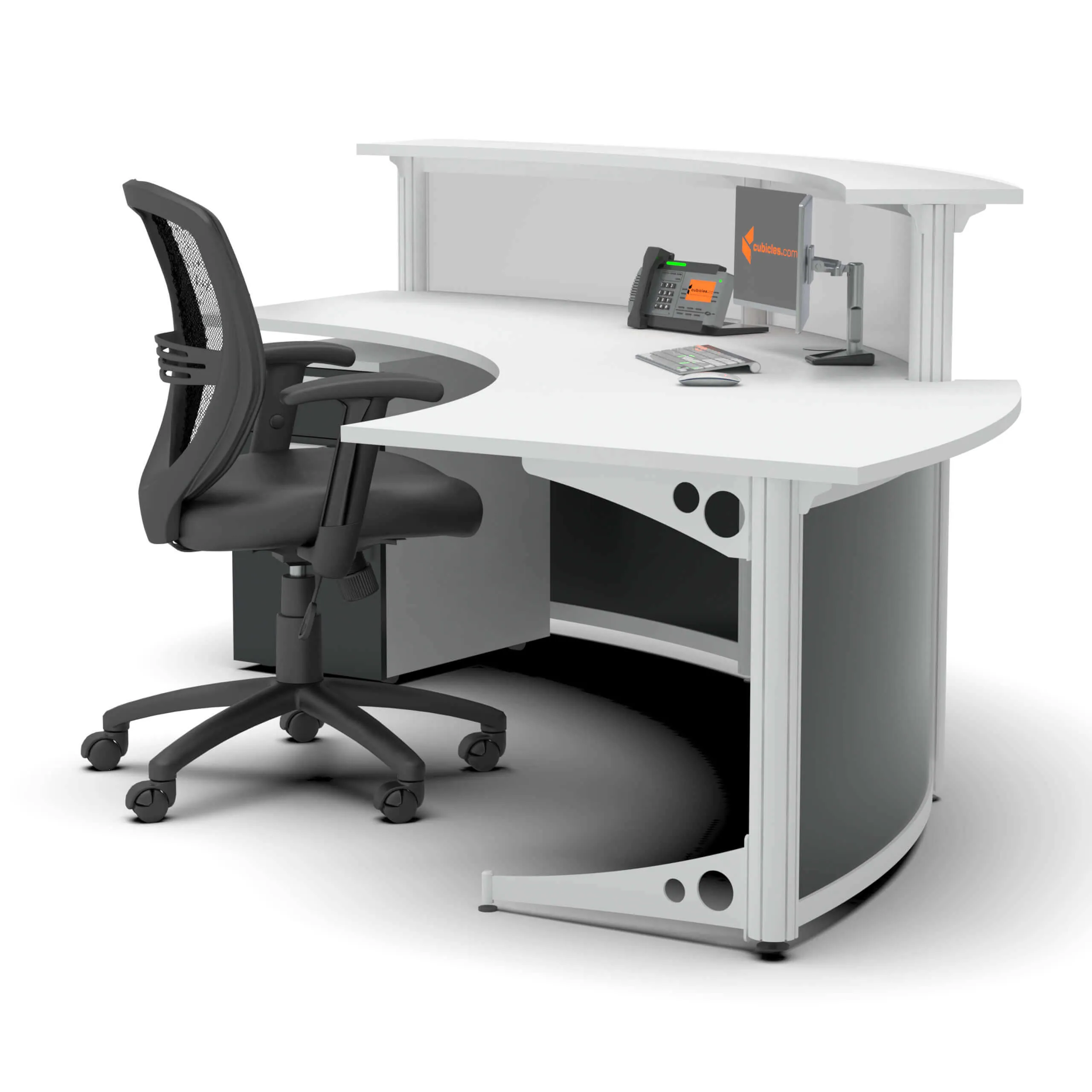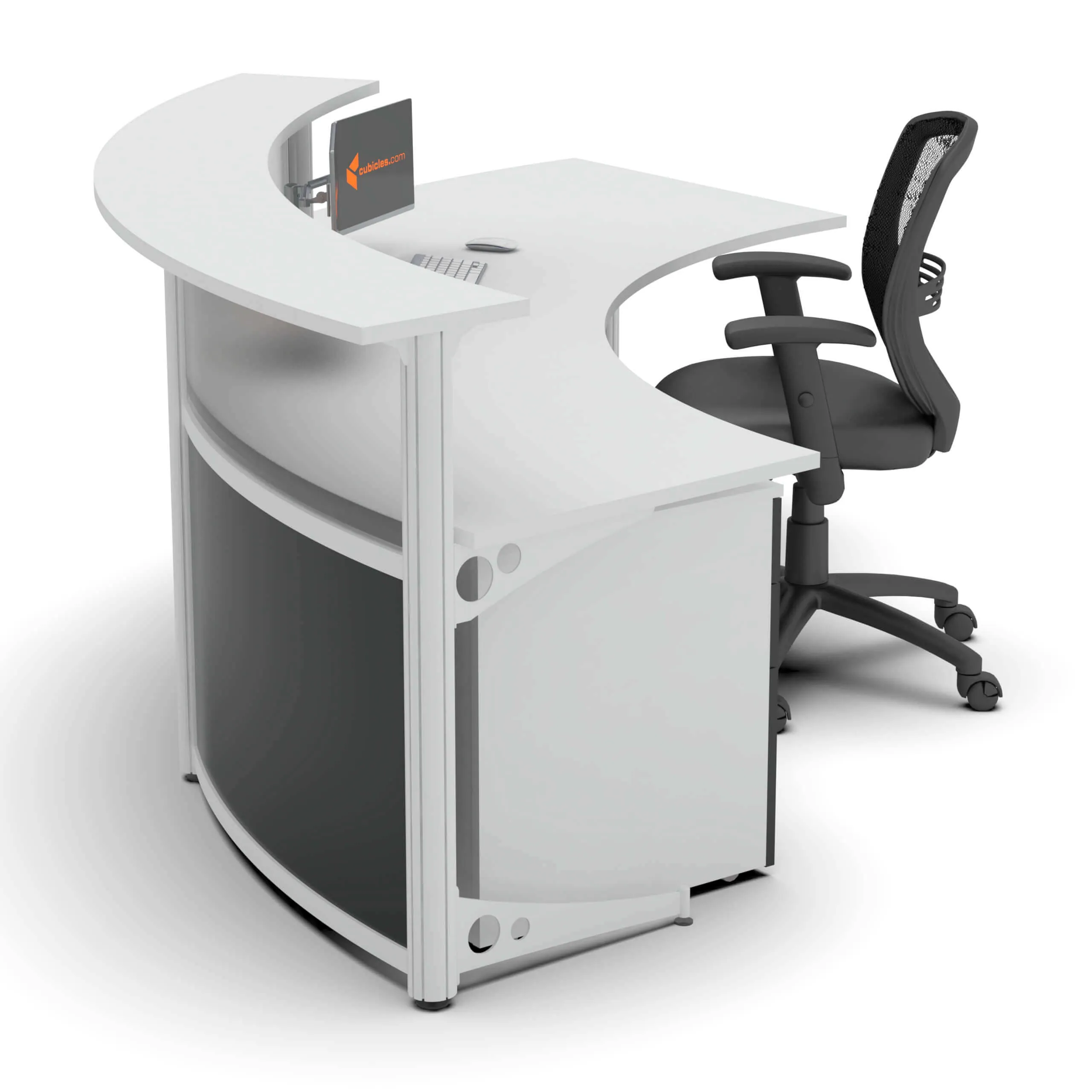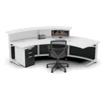 Introducing our corner reception desk with front curve, where contemporary design meets environmental consciousness, creating an inviting and sustainable workspace. With generous dimensions of 108’W x 84’D x 42’H, this eco-friendly reception desk exudes spaciousness and charm. The gentle curvature of its beam design adds a touch of sophistication, welcoming guests into a harmonious blend of style and alluring shapes.
