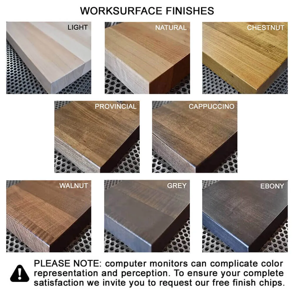 Constructed from durable materials, this industrial L-shaped desk is built to last. Each piece is non-toxic and free from harmful byproducts, ensuring safety for use and storage. It is available in multiple colors, including Light, Natural, Chestnut, Gray, Provincial, Cappuccino, Walnut, and Ebony.