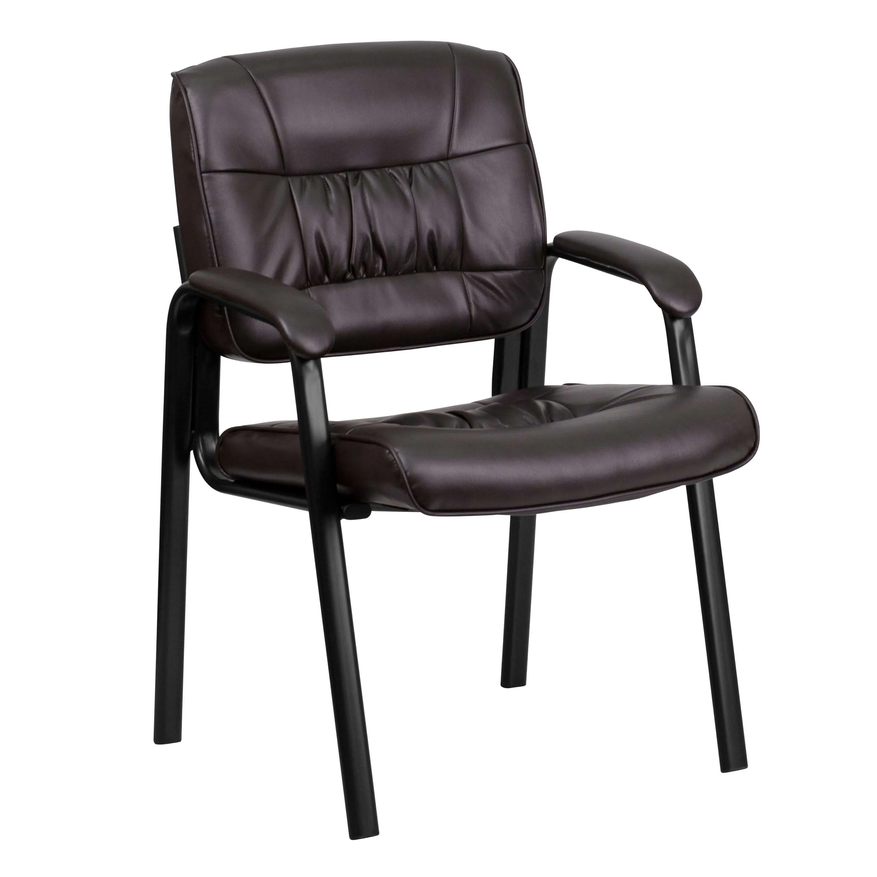 These side chair with arms are upholstered with special mixture of leather and polyurethane for added softness and durability. The frame is made of black metal The chair is available in four colors: Black, Brown, Burgundy and White.