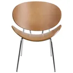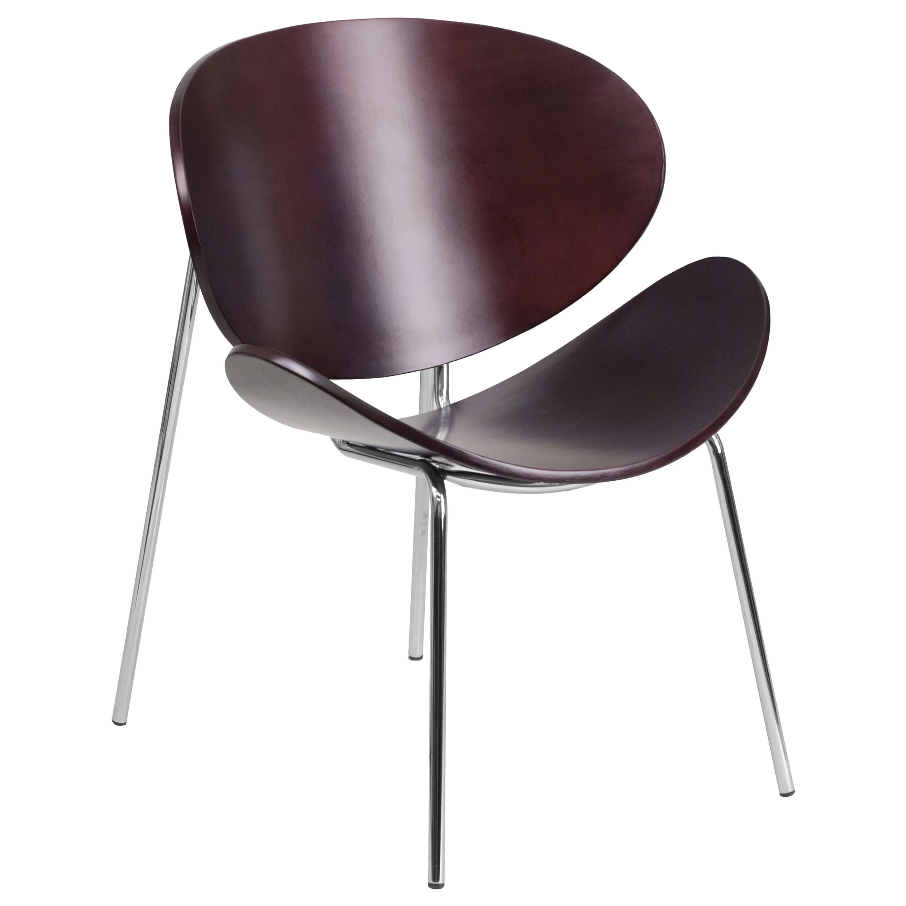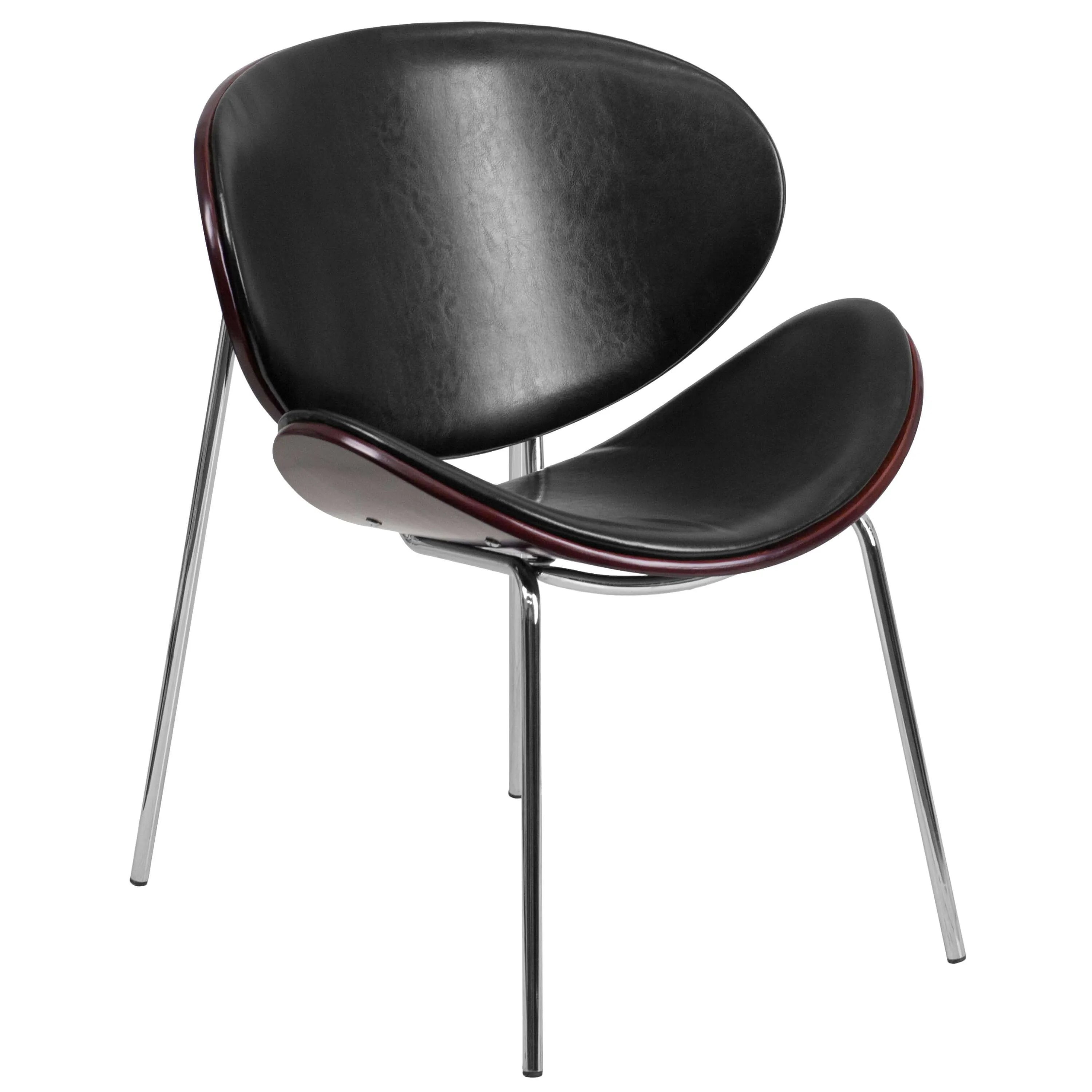 These guest chairs either have a wooden seat or one upholstered with special mixture of leather and polyurethane for added softness and durability. The metal frame features Chrome finish. The chair is available in three colors: Black, Mahogany and Beech.