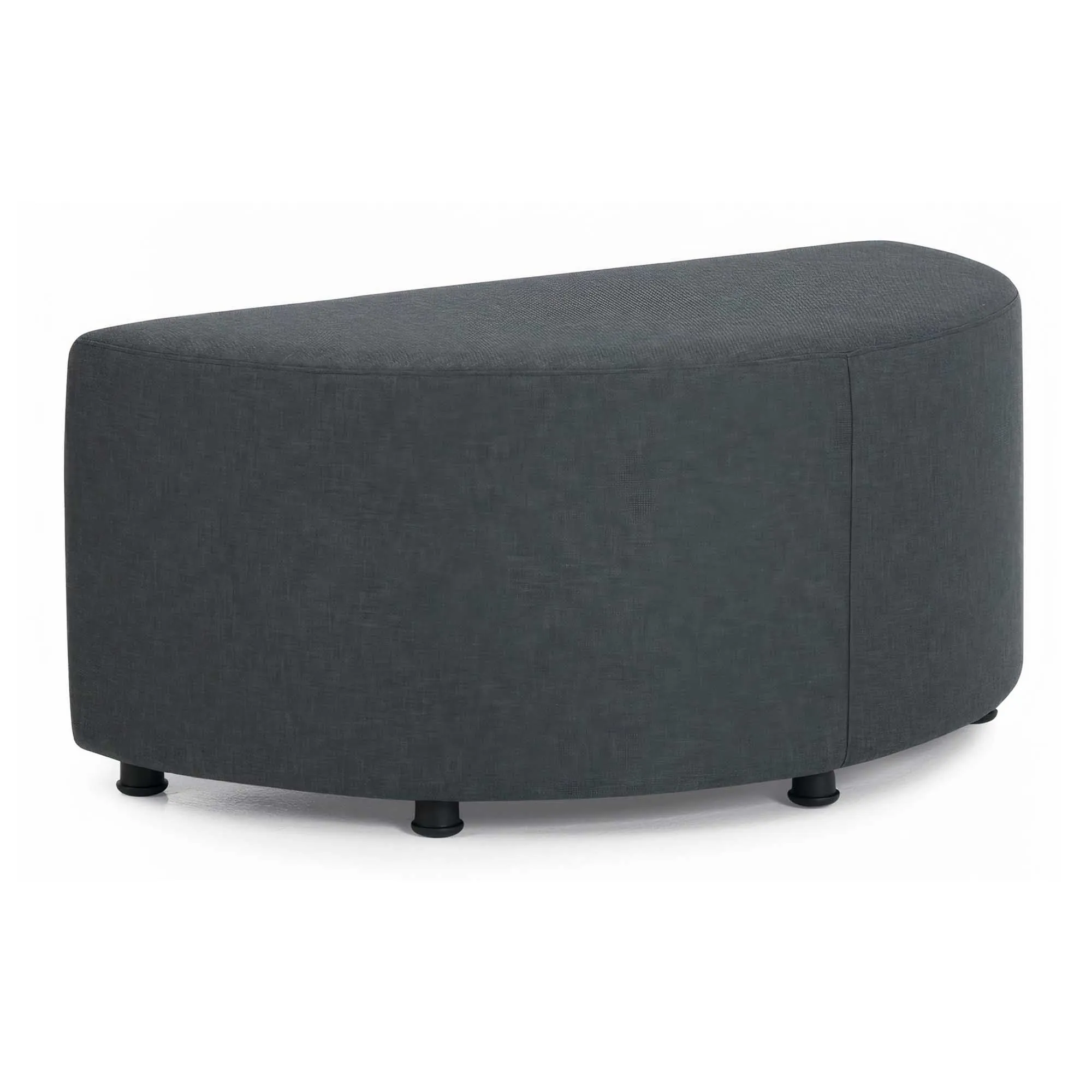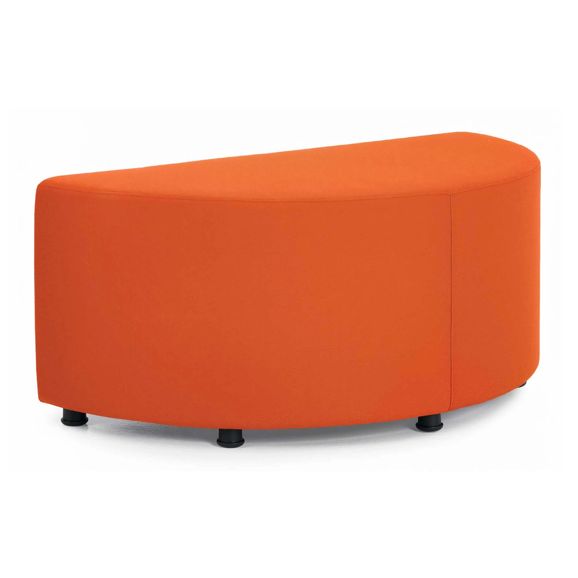 Create a convenient and visually compelling layout, when you bridge your seating arrangement with our half round reception ottomans. Designed to give you great possibilities for custom arrangements, and to blend perfectly with your lobby's contemporary aesthetics, these ottomans are made to serve and impress with comfort, durability and a clean, sleek look provided by the modern black legs and high-quality upholstery, which comes in a wide variety of colors, to match ideally any color scheme.