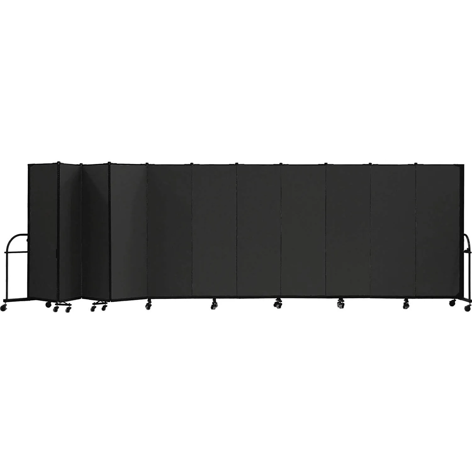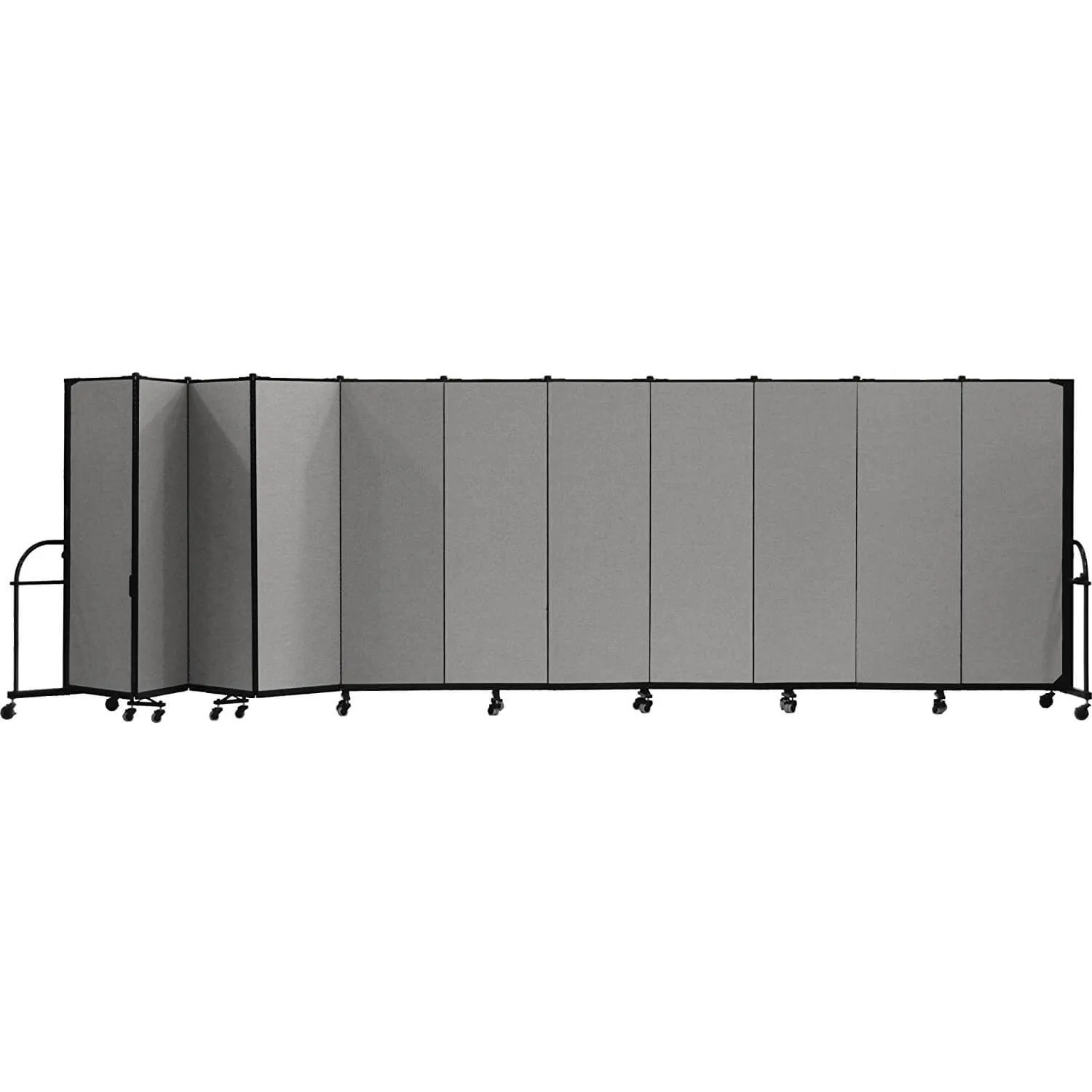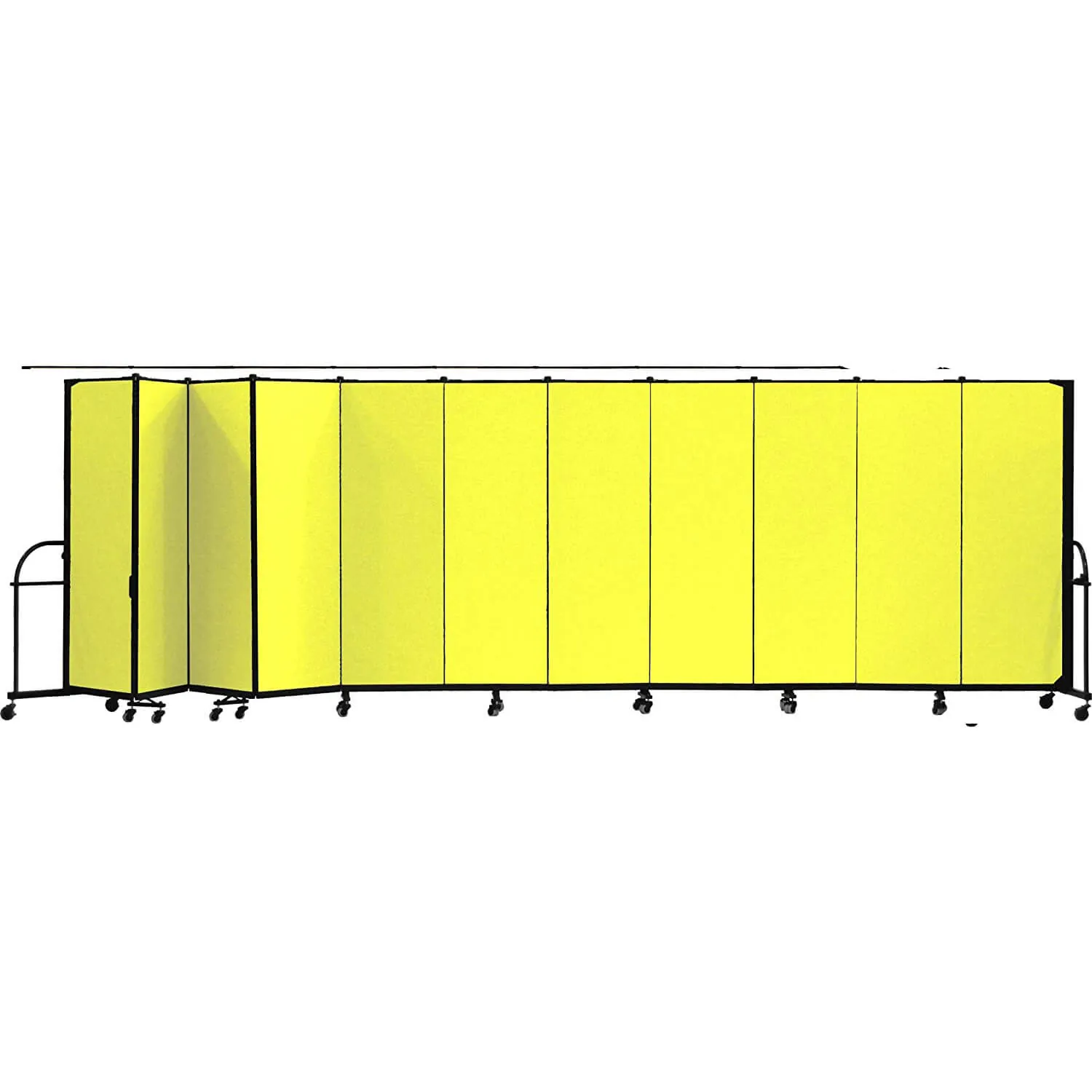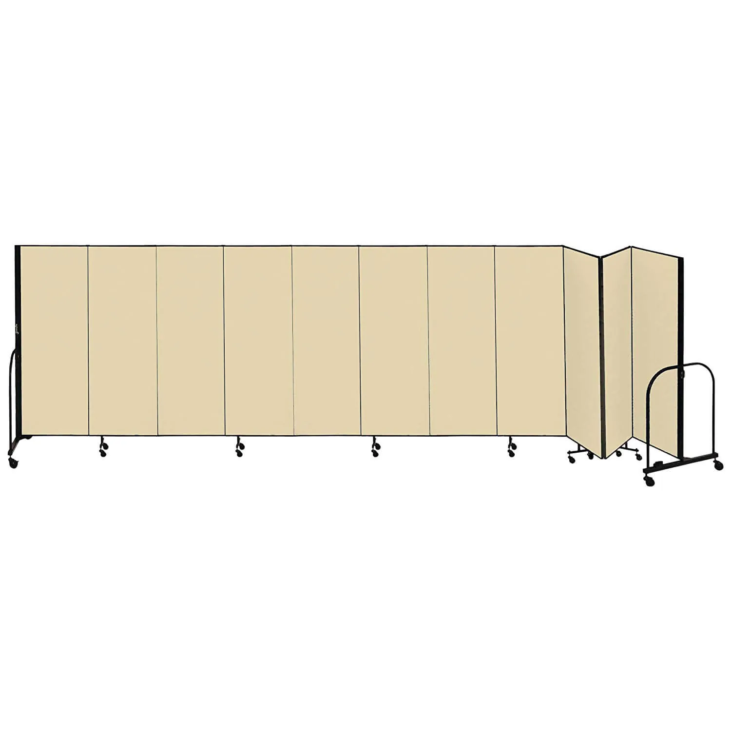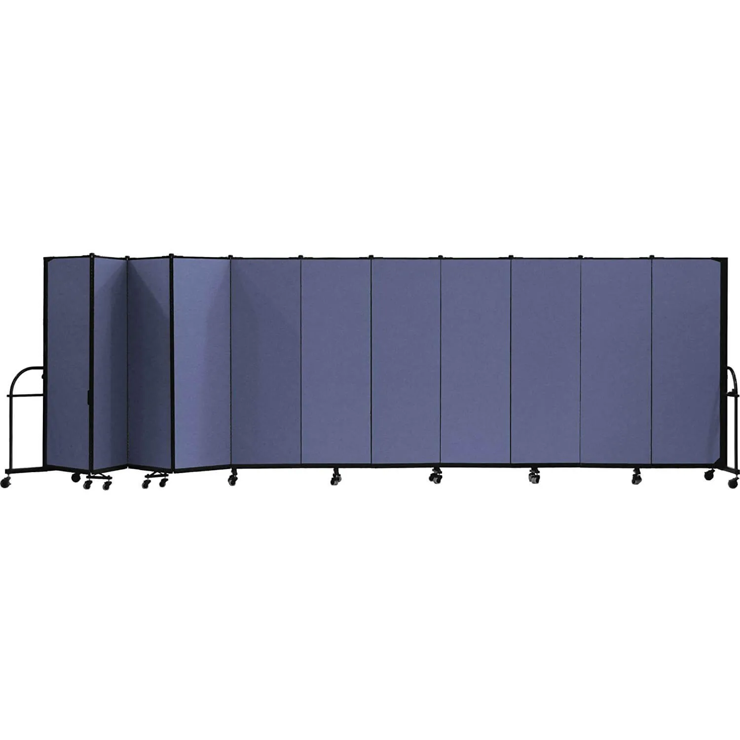 These panel room dividers are constructed using 3/4-inch-thick panels made out of a closed-cell honeycomb core layered with fiberglass facing and covered with stitch-bonded polyester fabric to provide you with years of dependable use. Durable steel end frame creates sturdy room dividers. They are available in ten colors - Lake, Primary Blue, Mallard, Primary Yellow, Desert, Walnut, Rose, Primary Red, Stone and Charcoal Black.