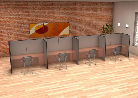 These panel dividers have 2-1/2'' extruded aluminum external frame and internal wood frame offering excellent strenght and stability. They are upholstered with designer Pewter fabric. The frame features scratch-resistant powder coating and is available in charcoal color.