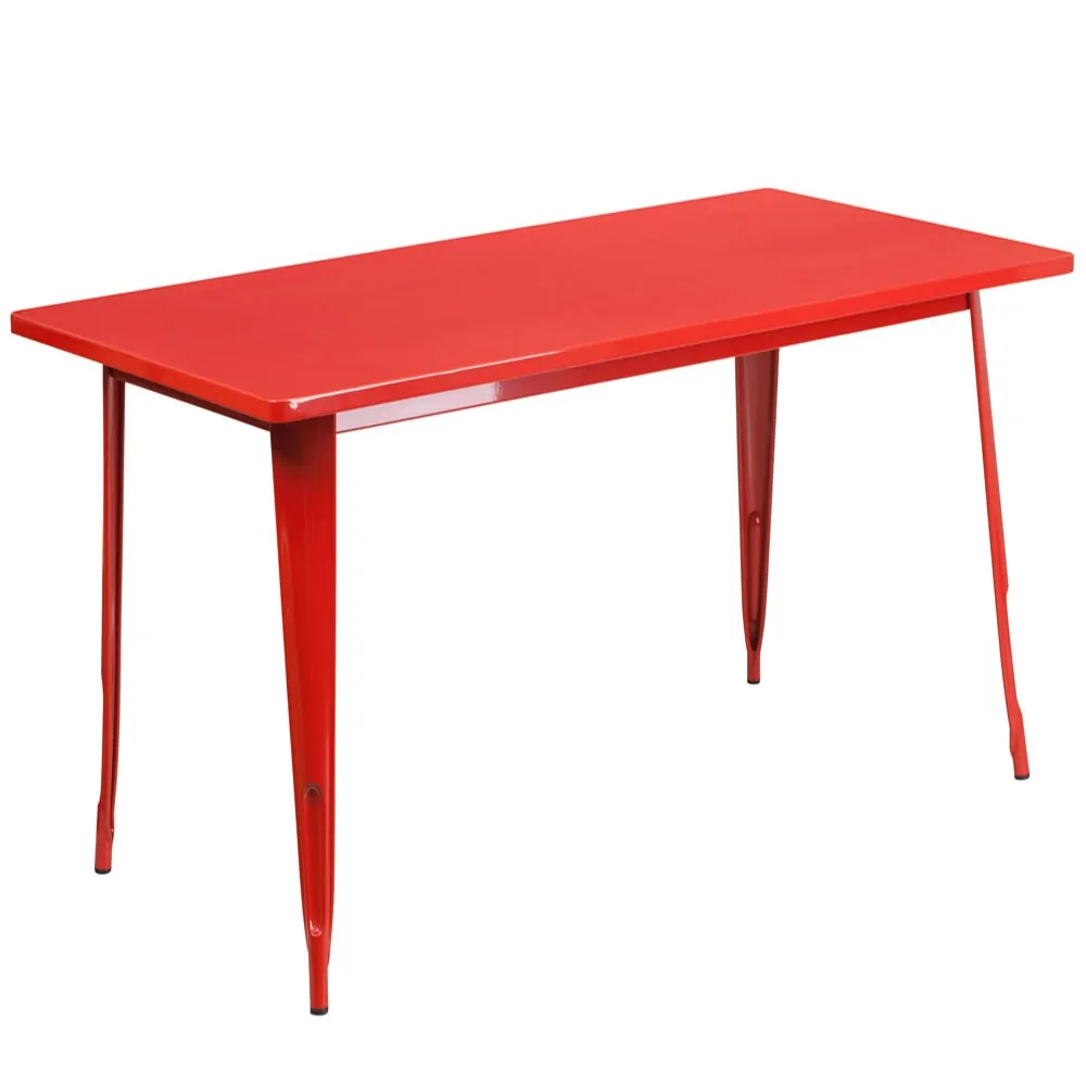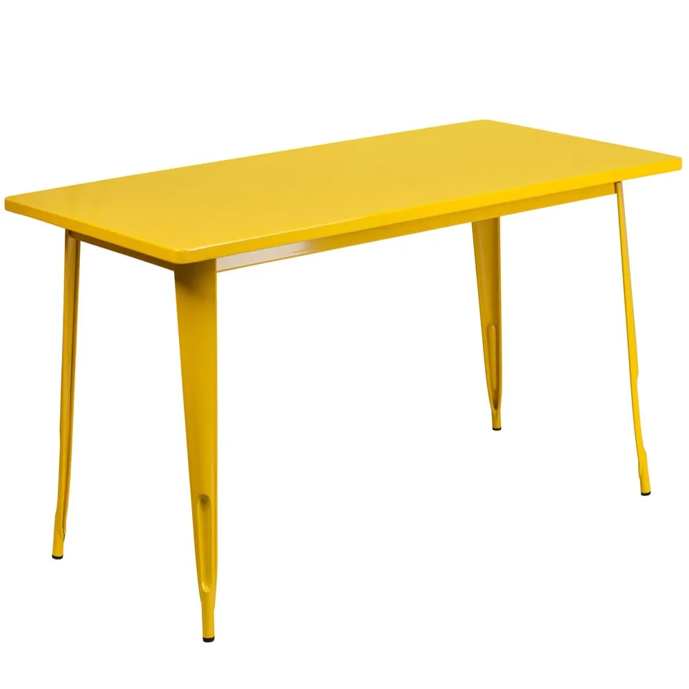 These restaurant tables have metal frame and top with powder coat finish. They are available in ten colors: White; Red; Black; Blue; Green; Orange; Silver; Yellow; Copper and Purple.