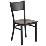 These restaurant chairs have metal frame and wooden seat. The seat is available in four colors: Cherry; Mahogany; Natural and Walnut.