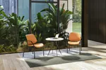 • Silver Frame, Turquoise Upholstered Back and Seat.