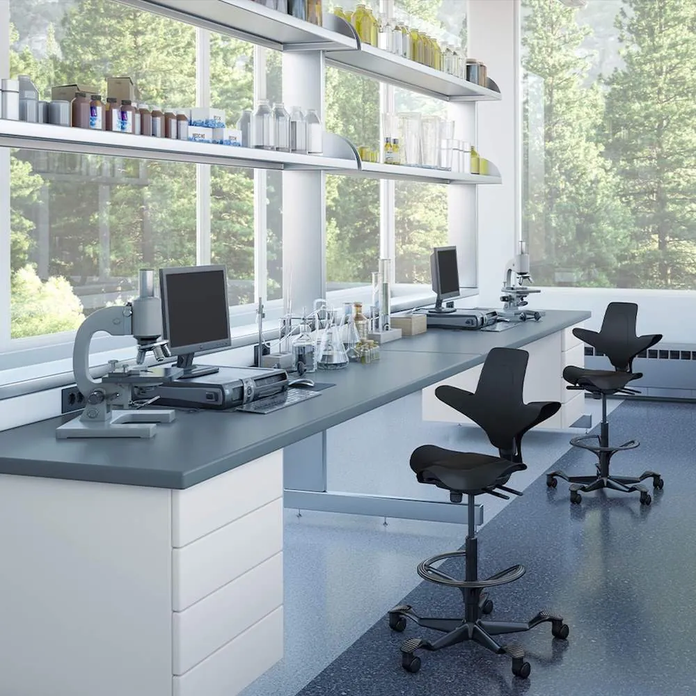 The lab stool chair is a great option for those seeking comfort and style. With its award-winning design, this office seat, offers a pleasant seating experience in a range of postures. The slim saddle provides support, promotes continuous motion, and is highly adaptable; thanks to its superior ergonomics. This adjustable office chair can be used as a task chair, height adjustable stool, conference seating, or as an executive seat.