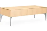 The rectangular coffee table boasts a minimalist design, characterized by its clean, straight lines and a streamlined silhouette. The spacious tabletop offers ample surface area for your books, decorative items, or a cozy coffee setting, making it a versatile addition to any office interior design. Its silver metal legs provide a modern contrast, adding a touch of sophistication and ensuring stability and durability.