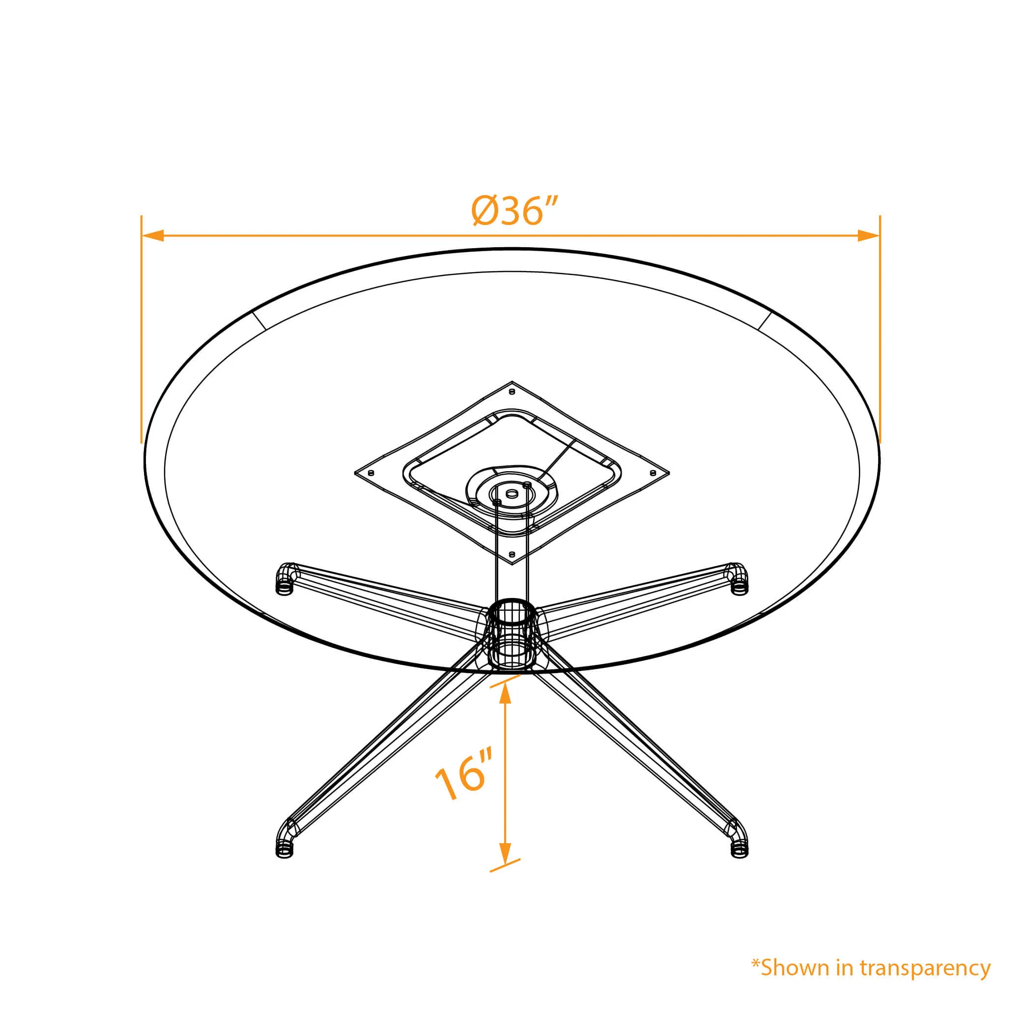 Sturdy metal table base with four legs.