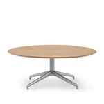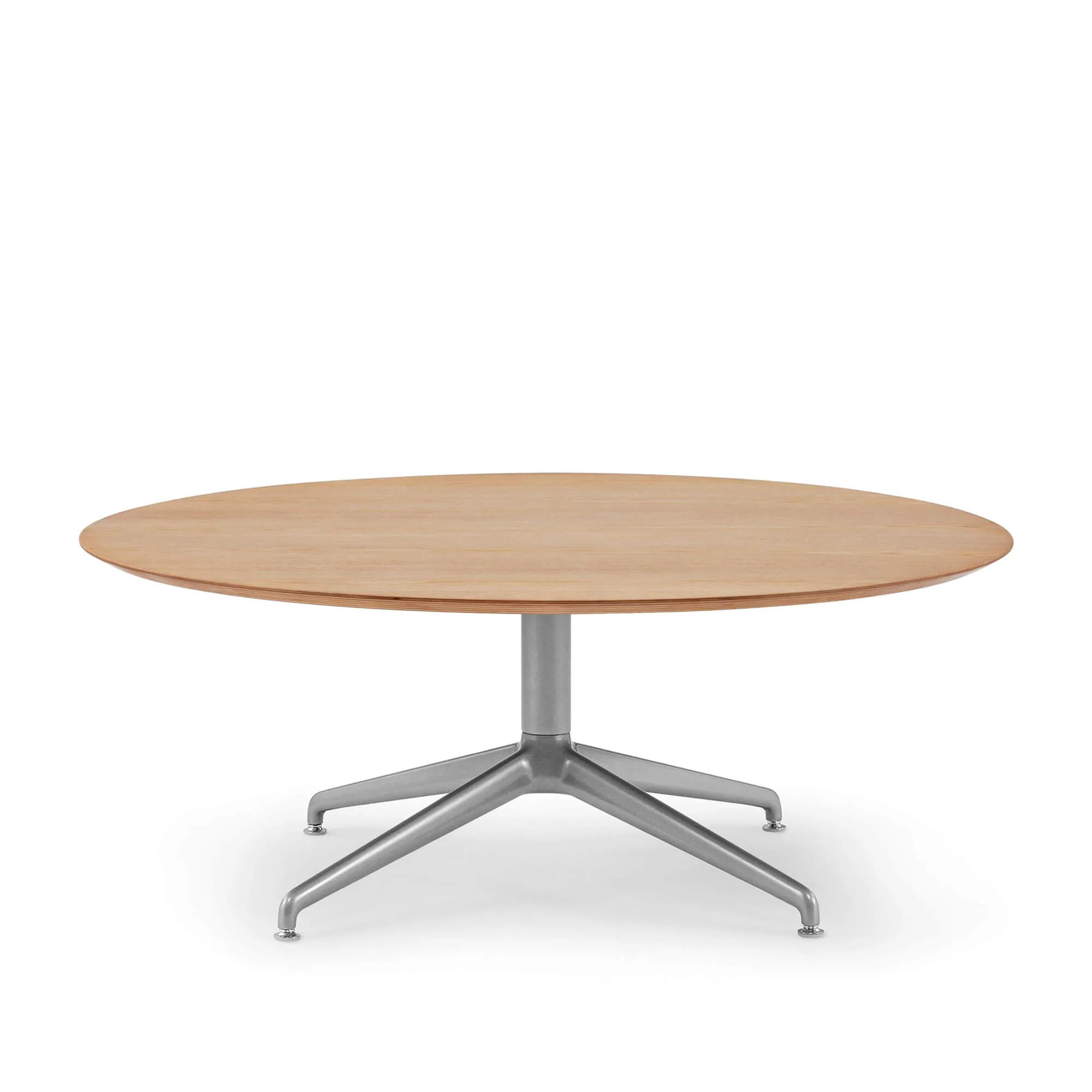 This minimalist coffee table comes standard with a White Oak on Ash veneer top with a metallic silver base. It’s also available in laminate, Fenix laminate, solid surface and back-painted glass tops that can be paired with a variety of metal finishes for the table base.