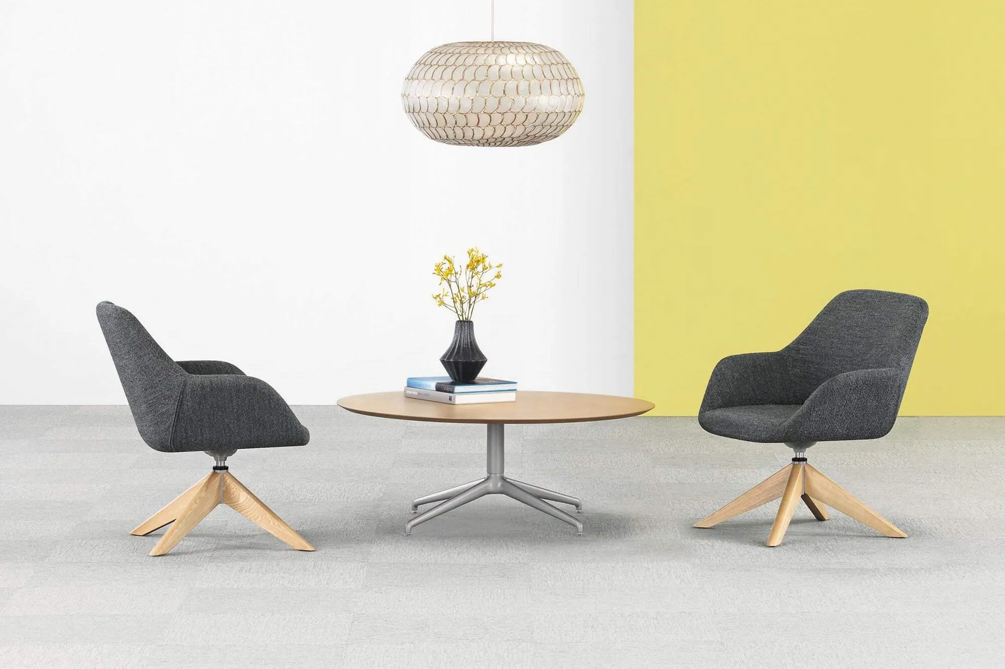 The Round Ash Coffee Table is a stylish and functional addition to modern office interiors. With its sleek, minimalist design, this trendy coffee table brings both elegance and practicality to communal spaces, offering a chic and contemporary aesthetic. Crafted from premium ash wood, the table's natural texture and smooth finish exude sophistication, while the round shape creates a welcoming and versatile surface for any office lounge, meeting area, or reception space. Its clean lines and durable construction make it a perfect blend of beauty and utility, ideal for enhancing modern workspace environments.
