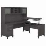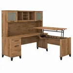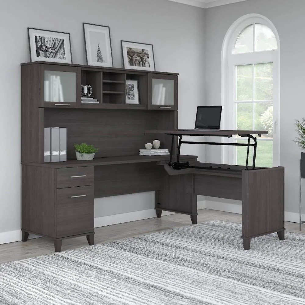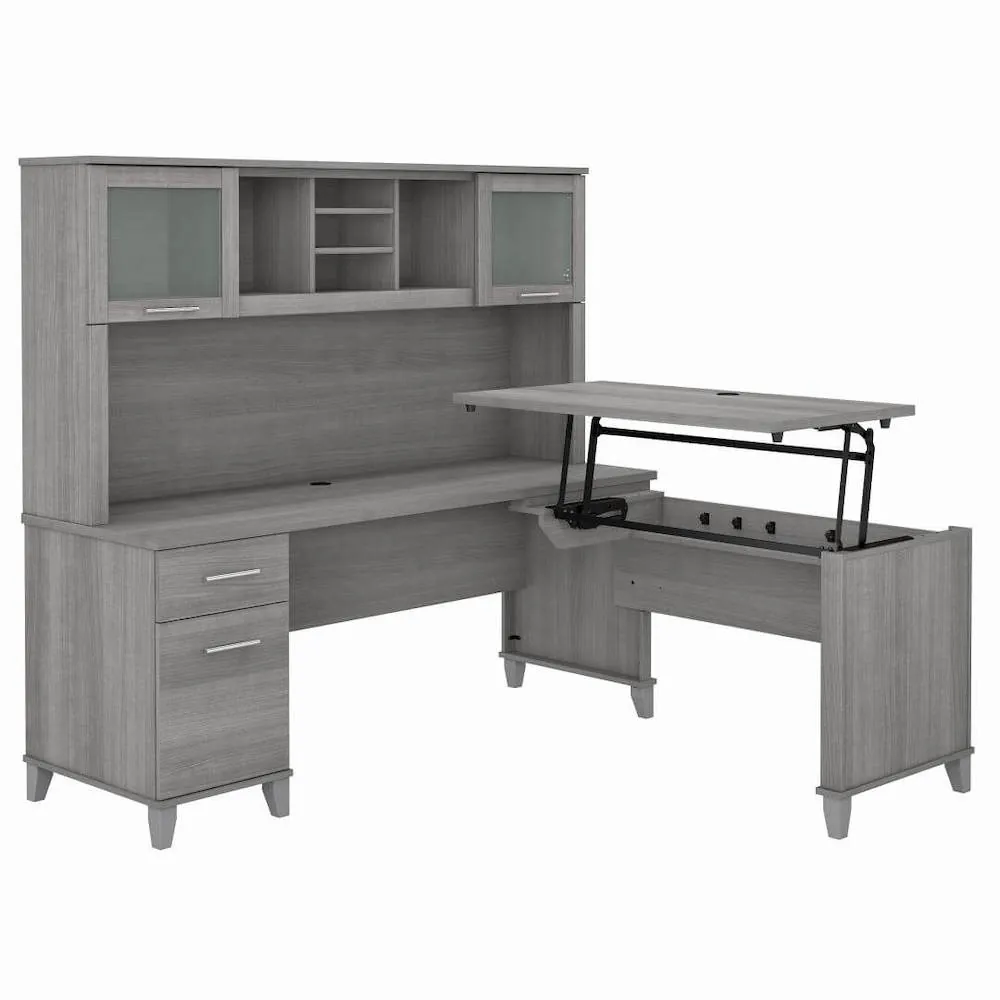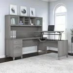 This computer desk with standing option is a perfect option for people looking for an ergonomic desk that is both fashionable and practical. The cutting-edge 42W x 24D Sit to Stand Return is a high-quality substitute for desktop risers that combines the versatility of more costly electric height-adjustable choices with all the health advantages of a standing desk. The desktop's integrated mechanical Lift-n-Lock mechanism enables it to effortlessly lock into position at standing heights of 35, 38, and 41 inches and effortlessly transition back to a seated position. In addition to a box drawer for supplies and utensils, the 72W x 24D Office Desk has a file drawer that opens on full-extension ball bearing slides for convenient access to legal and letter size papers.