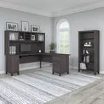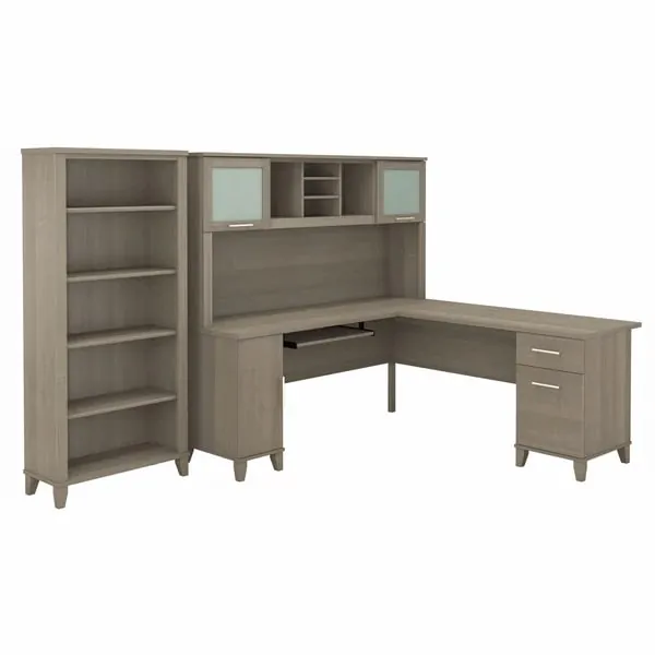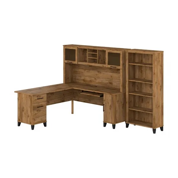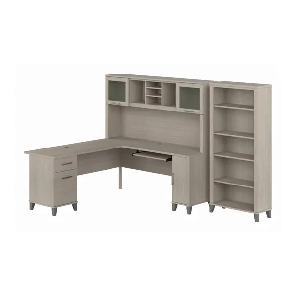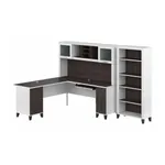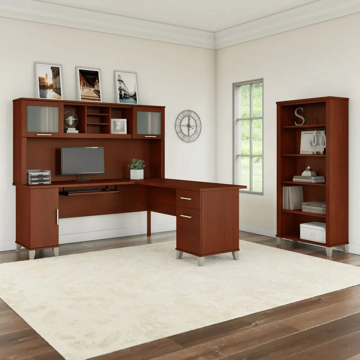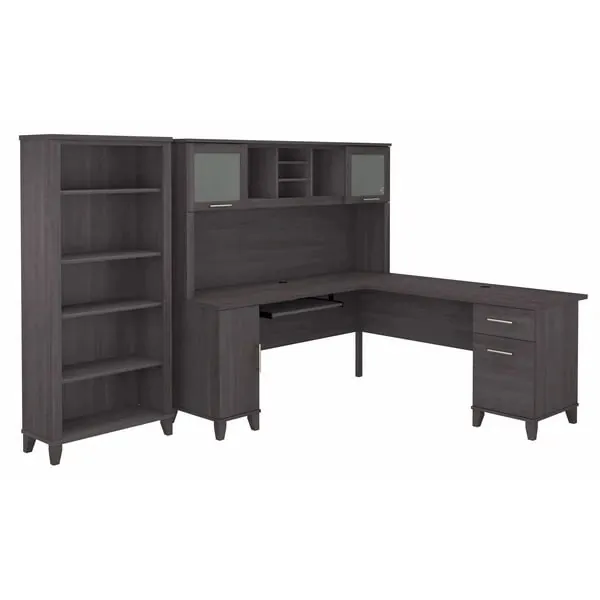 L Shaped Computer Desk With 5 Shelf Bookcase 72W
