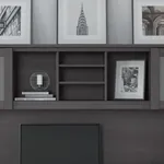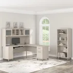 This L shaped computer desk with 5 shelf bookcase offers a contemporary appearance and useful features that make it an ideal personal workspace for a small office or home. There is enough space to spread out and finish big projects thanks to the huge 72W surface with cable management. While a vertical cabinet with an adjustable shelf and a box drawer offers plenty of storage for office supplies and utensils, a handy pull-out shelf is the ideal location to keep a keyboard or laptop. For quick access to letter-sized documents, even when located far back, a file drawer opens on smooth ball bearing slides.