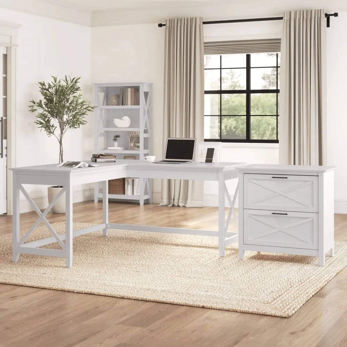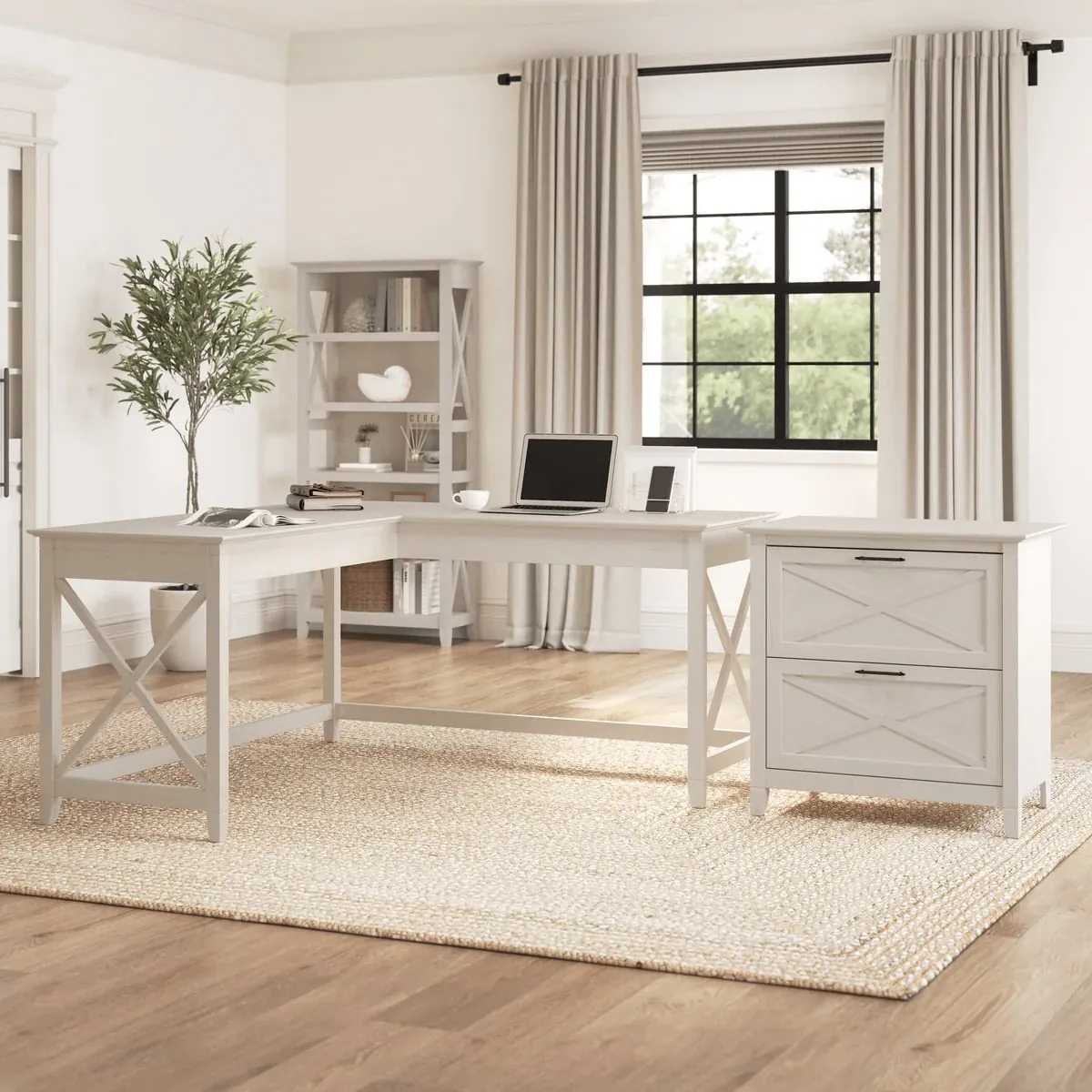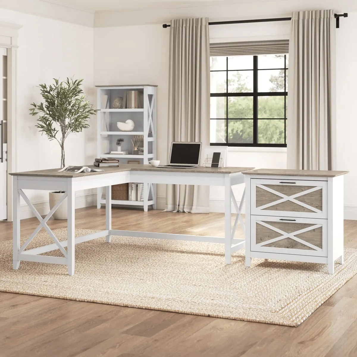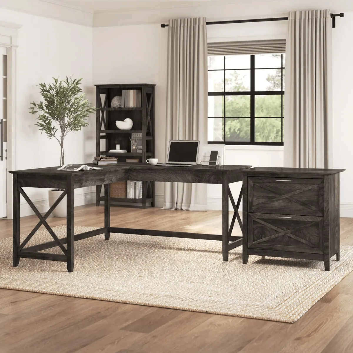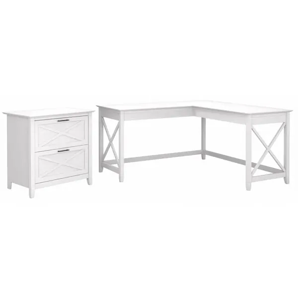 - Bundle includes: 60W L Shaped Desk, 2 Drawer Lateral File Cabinet