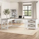 This laminate desk with lateral file set is finished in 8 colors: Cape Cod Gray, Dark Gray Hickory, Pure White Oak, Washed Gray, Reclaimed Pine, Bing Cherry, Shiplap Gray/Pure White and Linen White Oak.