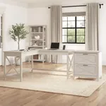 Our L Shaped Desk And File Cabinet is a great option for a home office because of its simple yet functional design. If your space is limited, consider putting the Desk in a corner or using the fully finished back to take center stage in the room. The sturdy work surface measures 60W by 60D, so you can spread out when working on your daily chore or just surfing the web with a computer, documents, and more. Although the corner desk's intelligent construction and high-quality materials enable it to sustain up to 200 pounds, its robust post leg design and distinctive X pattern accents on the side panels give it a laid-back, open appearance.