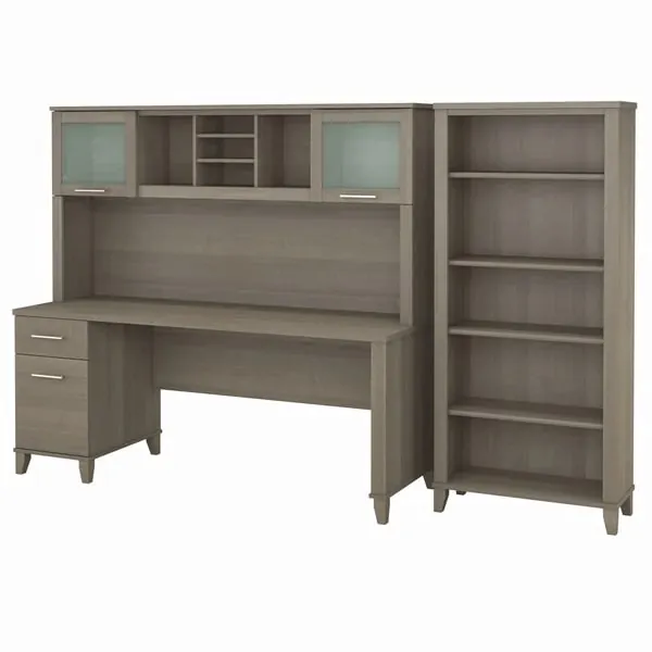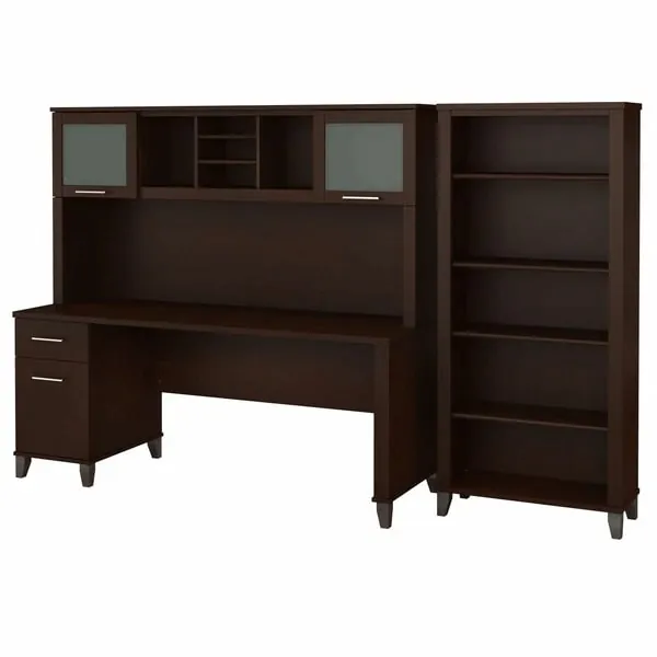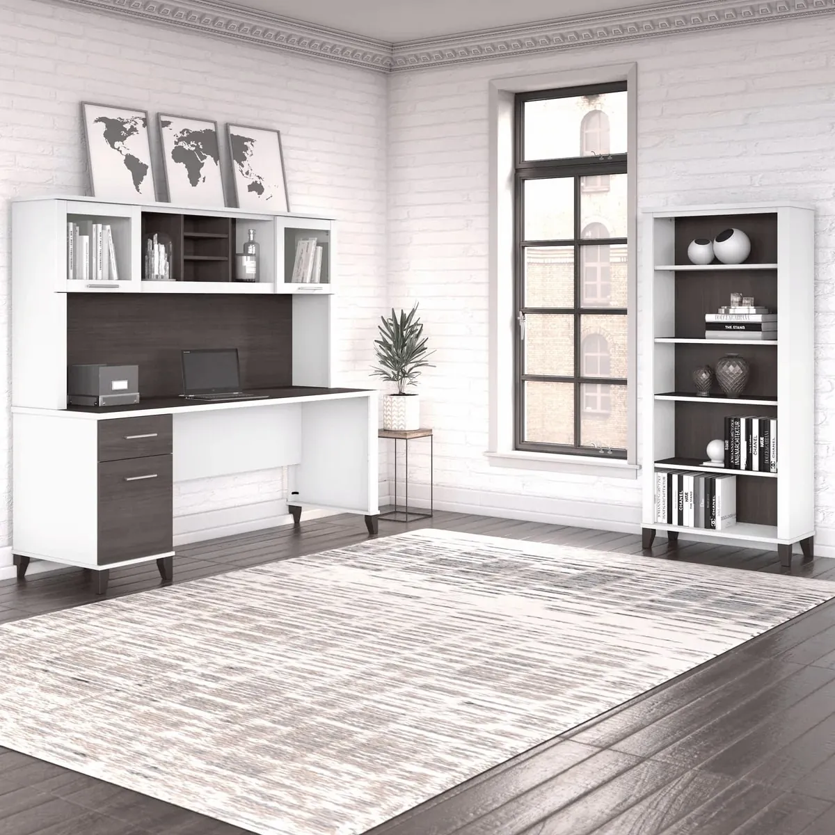 - Bundle includes: 72W Office Desk with Drawers, 72W Hutch, 5 Shelf Bookcase