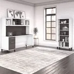 This laminate desk with bookshelf set is finished in 10 colors: Storm Gray/White, Ash Gray, White, Mocha Cherry, Fresh Walnut, Storm Gray, Hansen Cherry, Sand Oak, Platinum Gray and Maple Cross.