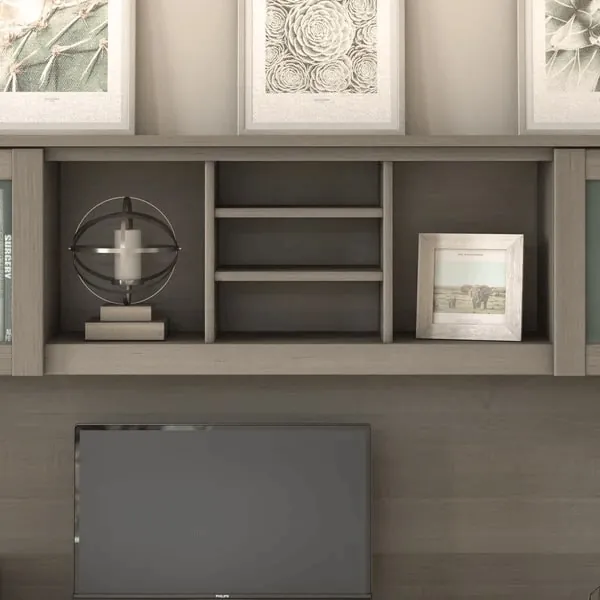 The Office desk with hutch and 5 shelf bookcase provides the necessary storage and display space to finish your elegant yet practical home office. For a customised workstation option, the Hutch mounts firmly on either side of the matching 72W Office Desk with Drawers or L Shaped Desk (both offered separately). There are two shelves to house work-in-progress and spacious open compartments that are ideal for books, binders, or decorations. Two frosted glass doors offer hidden storage to reduce visual distractions. A captivating home office design that blends in with your current décor can be achieved with transitional styling, which includes modern metal hardware and your selection of various eye-catching finish selections.