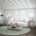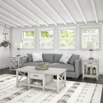 These laminate coffee tables are finished in 8 colors: Cape Cod Gray, Dark Gray Hickory, Pure White Oak, Washed Gray, Reclaimed Pine, Bing Cherry, Shiplap Gray/Pure White and Linen White Oak.