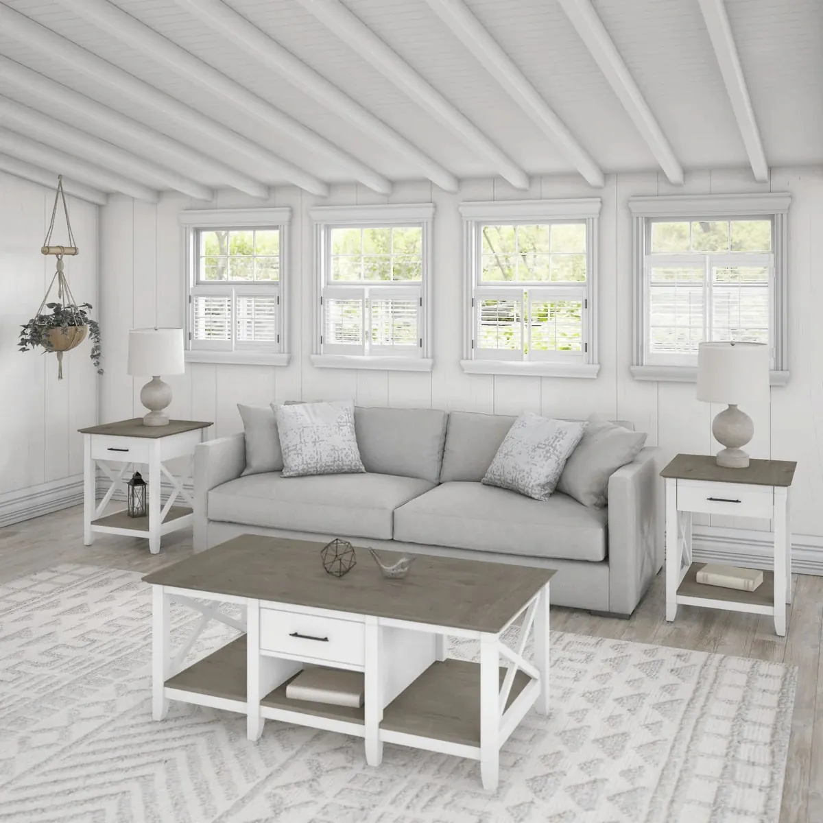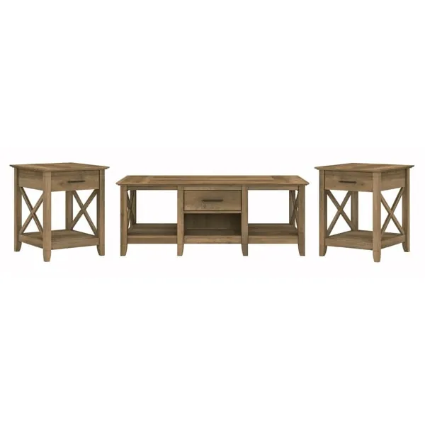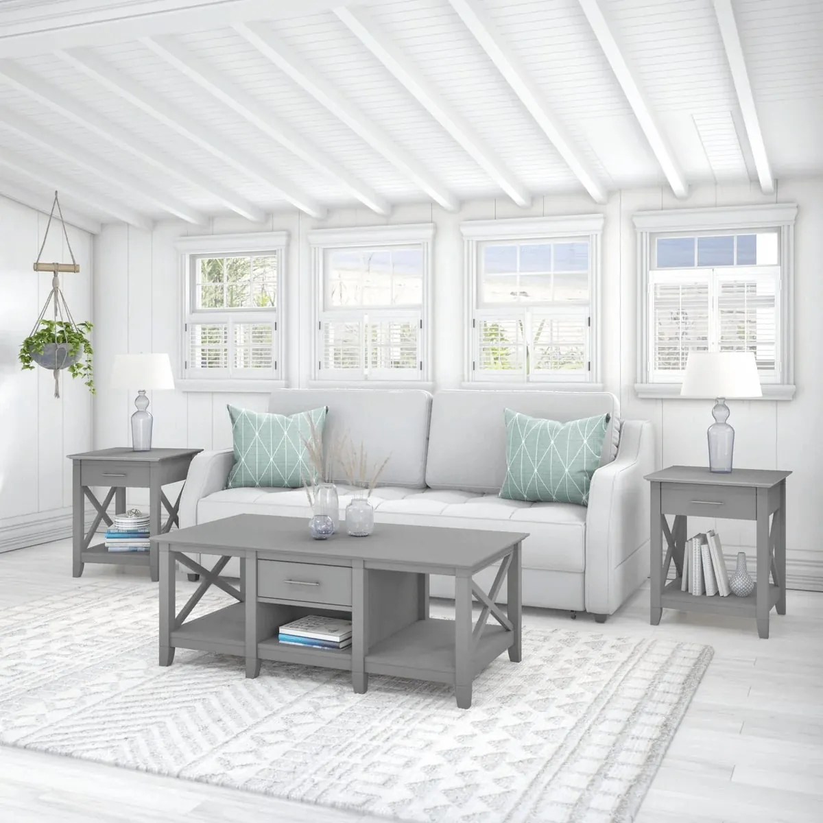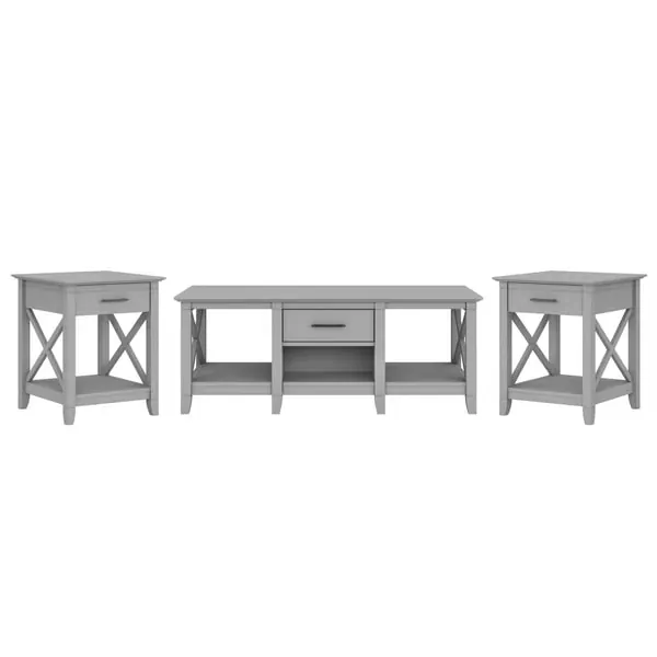 This Coffee Table with Set Of Two End Tables is the ideal piece to instantly transport your living area to a beachside hideaway. Highlighted by its unique X pattern embellishments and your choice of many casual finishes, this little side table is a natural match in homes that embrace cottage and farmhouse decor. While the lowest shelf is ideal for holding reading materials and other home things, a box drawer keeps writing utensils, notepads, TV remotes, and more organized. The surface provides ample space for a lamp, plant, or other personal touches to your design.