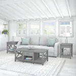 - Bundle includes: Coffee Table with Storage, Set of 2 End Tables with Storage