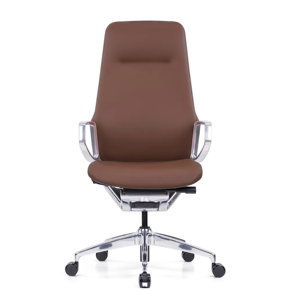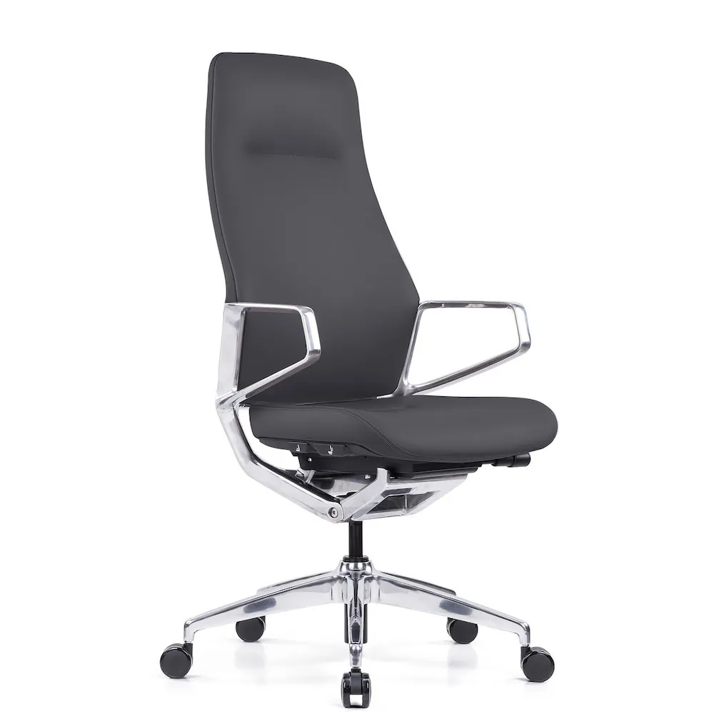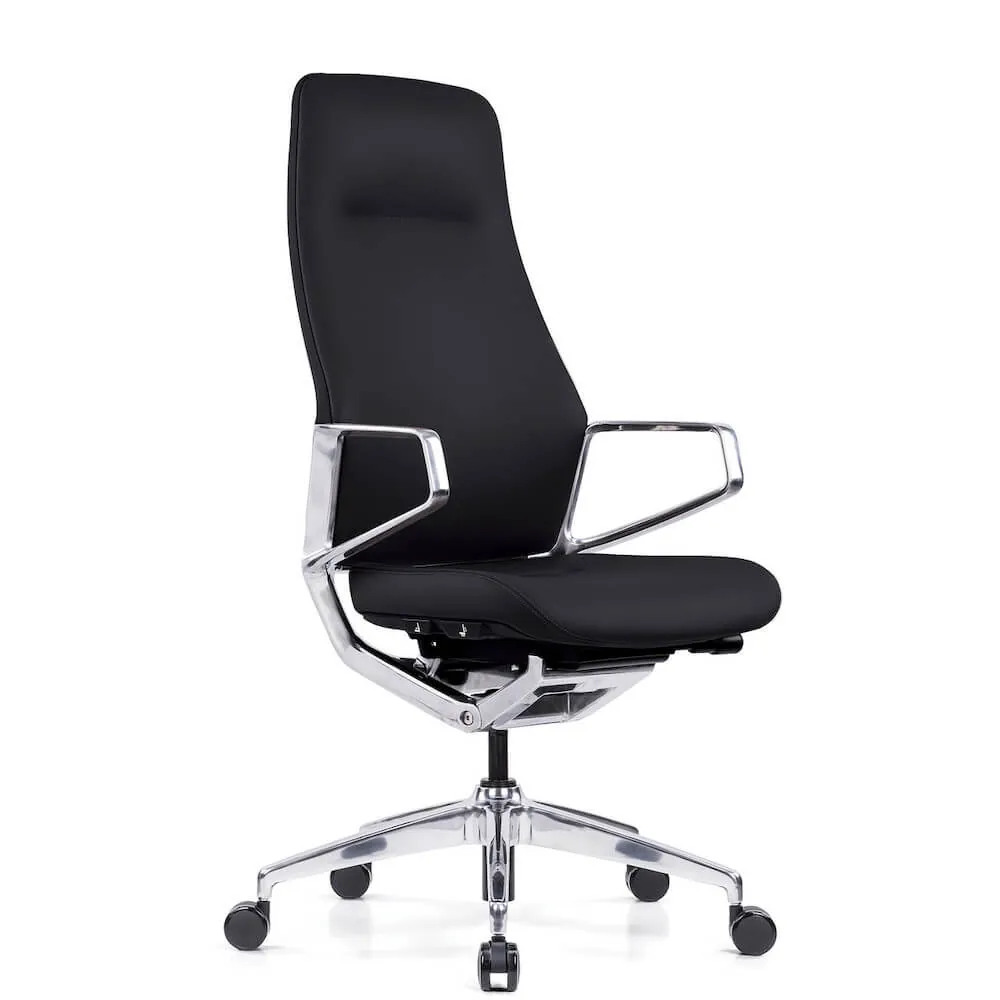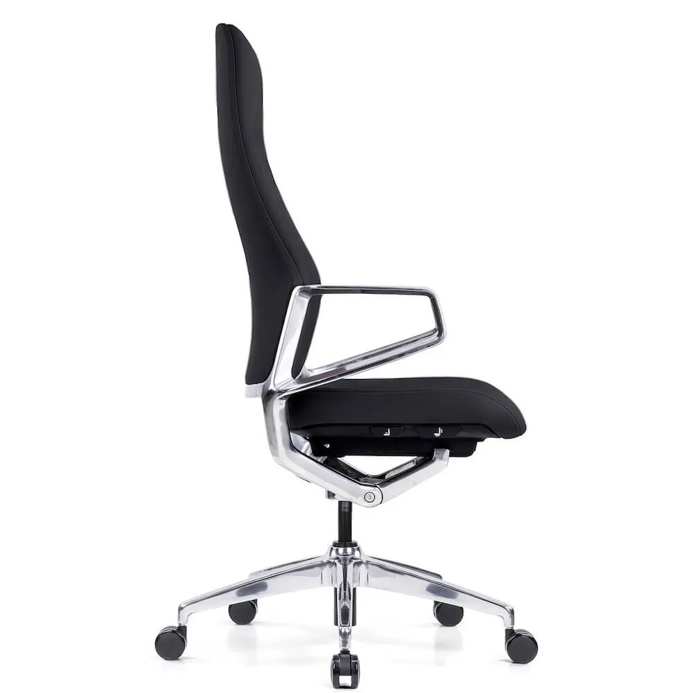 The high back upholstered office chair features a luxurious design characterized by sleek lines and quality materials. This chair boasts a microfiber cover on the backrest and an ultra-soft seat, ensuring both comfort and sophistication. With its aluminum base and armrests, it exudes a sense of refinement, making it the perfect addition to any ultramodern office workspace. Experience superior comfort and style with this premium office seating solution.
