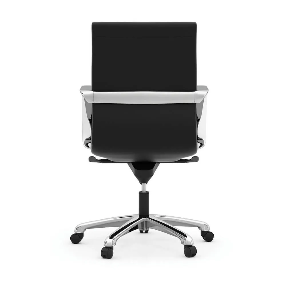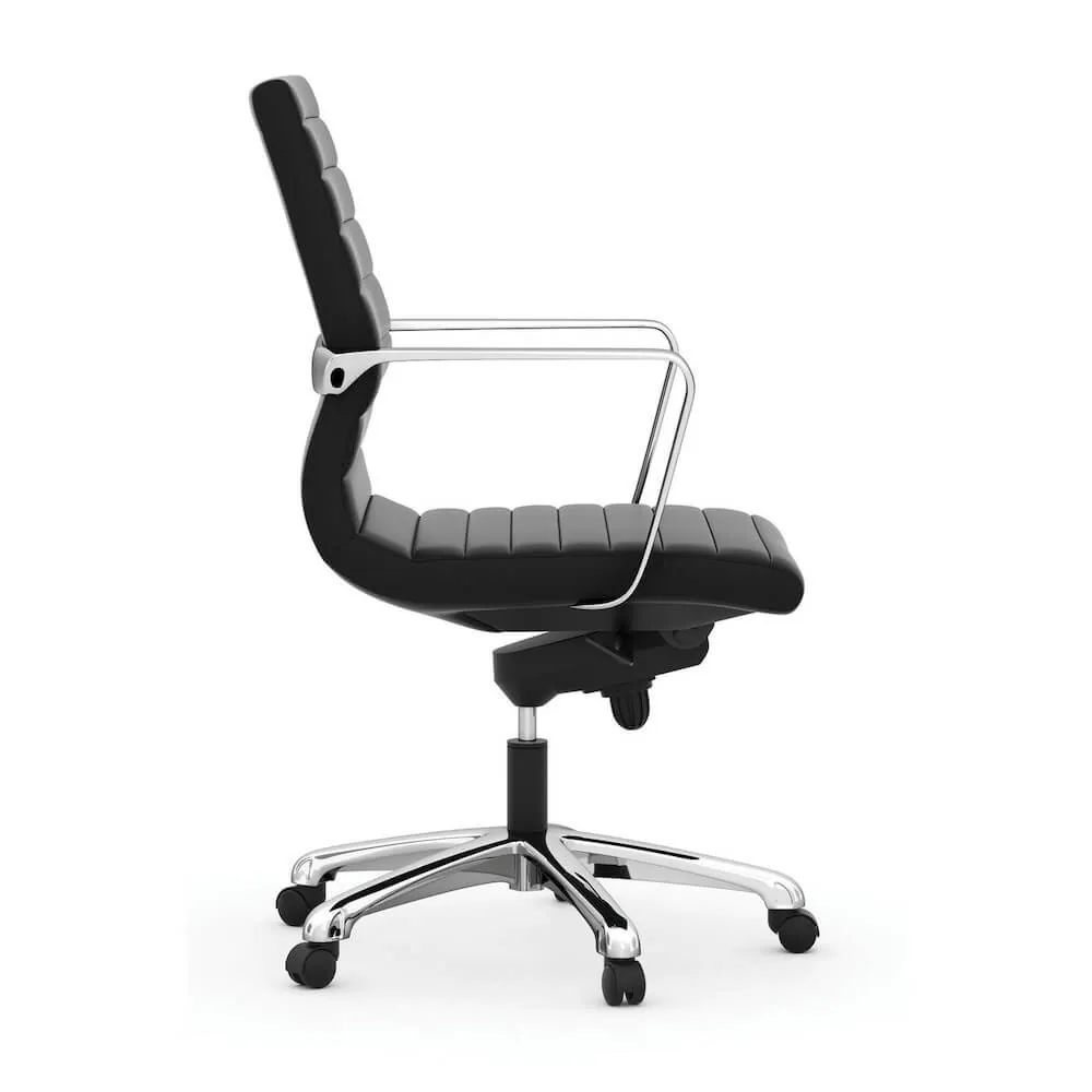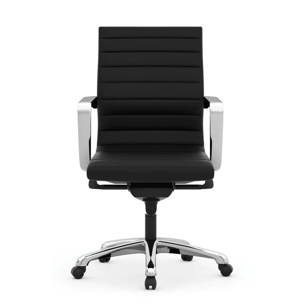 The mid back leather chair offer a range of sophisticated executive seats designed for comfort, style, and productivity. This desk office chair features soft foam seating, polished aluminum arms, and durable black PU leather upholstery. With its contemporary design, tilt tension adjustment, and 27'' base for stability, it is a great choice for any workspace. Offered in sleek black or gray, this executive office chair with wheels has ergonomic support, chrome frames, and mobility features like 360-degree swivel and adjustable height. Ideal for offices, conference meeting rooms, and home offices, these chairs combine comfort with a minimalist, stylish look to enhance any space.