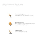 • Height-Adjustable Arms, allows user to adjust arms up and down within a set range to accommodate a variety of task.