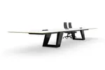 The Large Conference Table with Angled Table Legs is a stunning addition to any workspace, designed to blend style, functionality, and durability. This marvel of conference room interior design features a spacious tabletop, perfect for accommodating large team meetings or hosting collaborative sessions. Supported by two robust steel legs, angled for both aesthetic appeal and structural stability, the table exemplifies the epitome of conference table modern design principles. Its sleek and minimalistic lines complement contemporary office environments, making it ideal for boardrooms, co-working spaces, or executive offices.