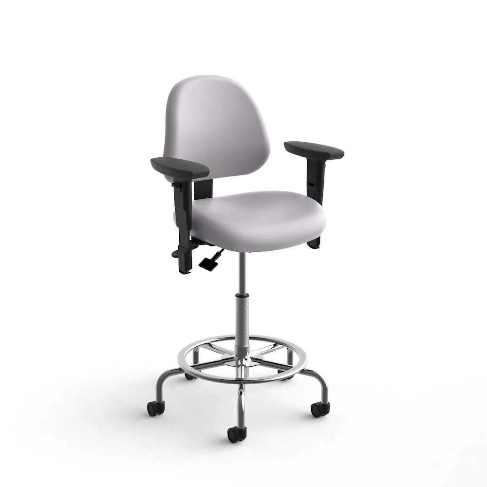 Our Lab Stool Adjustable is designed to provide remarkable comfort and ergonomics for lab environments. Featuring a high back and sturdy tubular footring, it is ideal for long office hours, offering superior support.