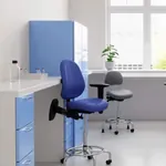 This laboratory seating is upholstered in easy-to-clean, anti-slip fabric, ensuring hygiene and safety. This versatile piece is ideal for use in laboratories, clinical settings, pharmacies, and various other clinical and professional environments.