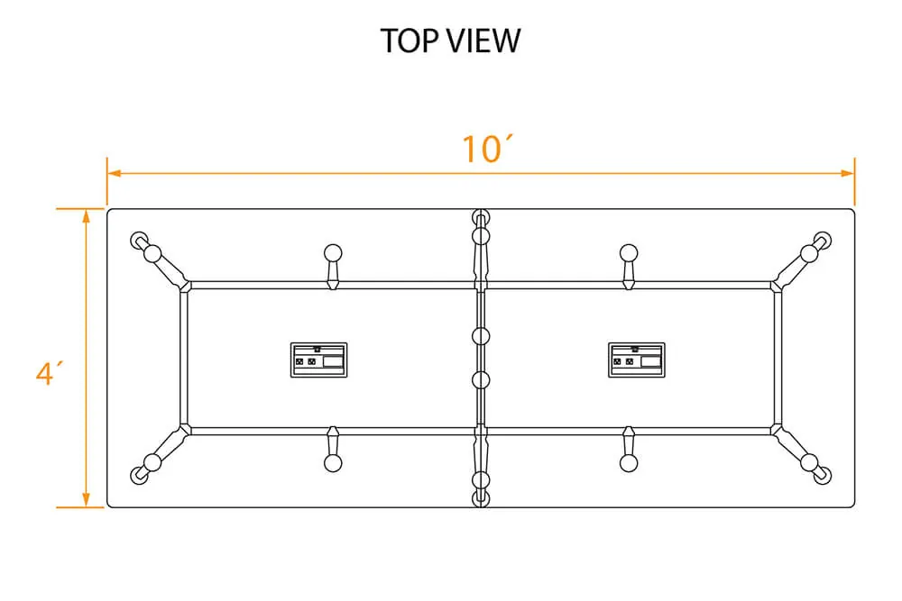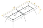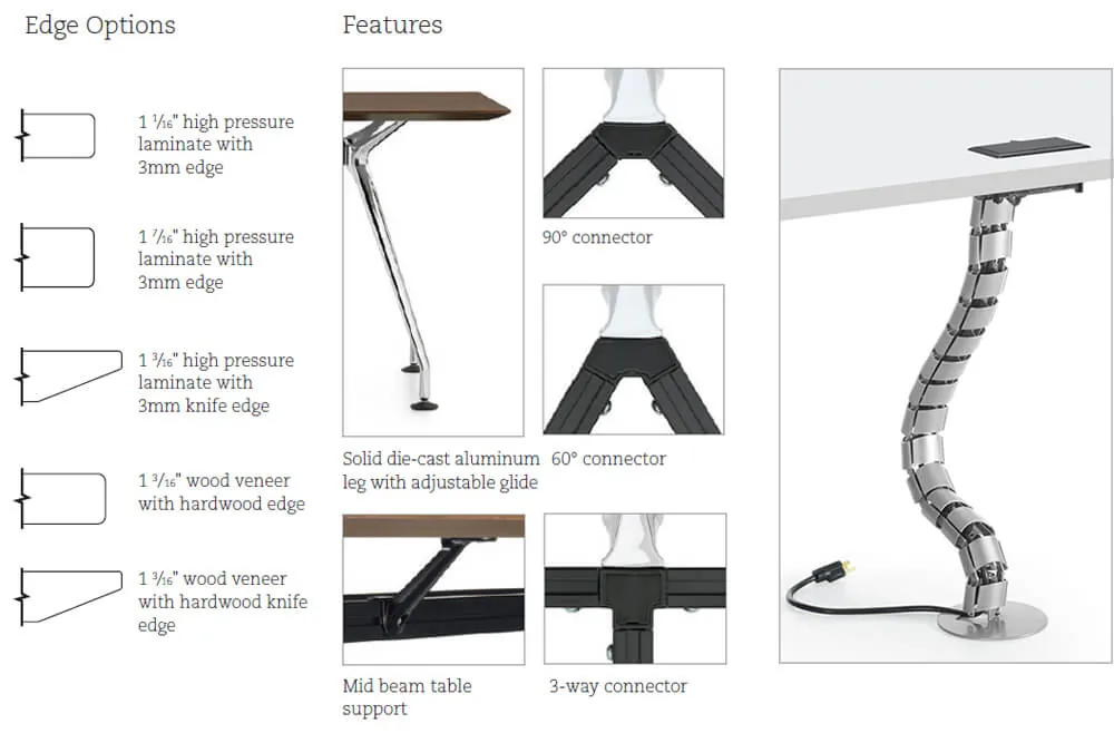 Legs connect to a modular beam system that supports the table top.