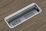 2 power boxes each with 2 outlets, 1 telecom plate, 1 USB-A and 1 USB-C.