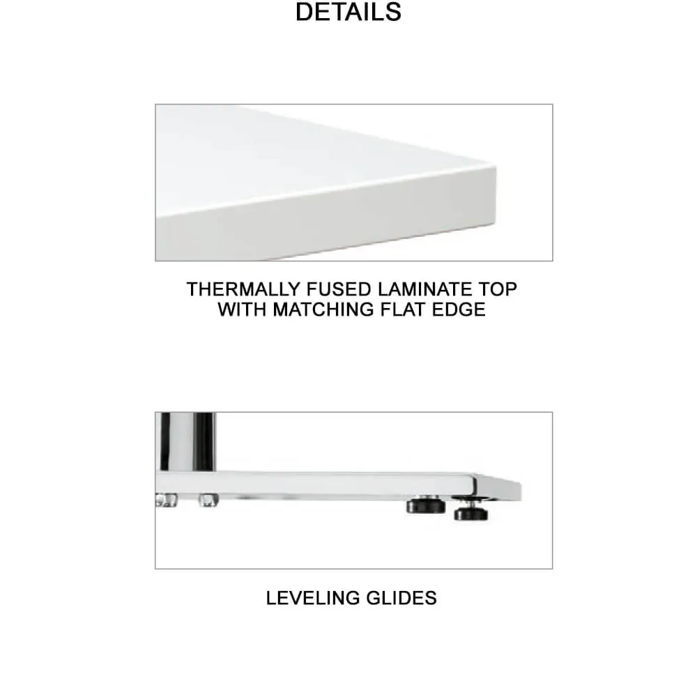 Office table top is 1” thick and has factory installed threaded steel inserts that ensure metal-to-metal connection with base.