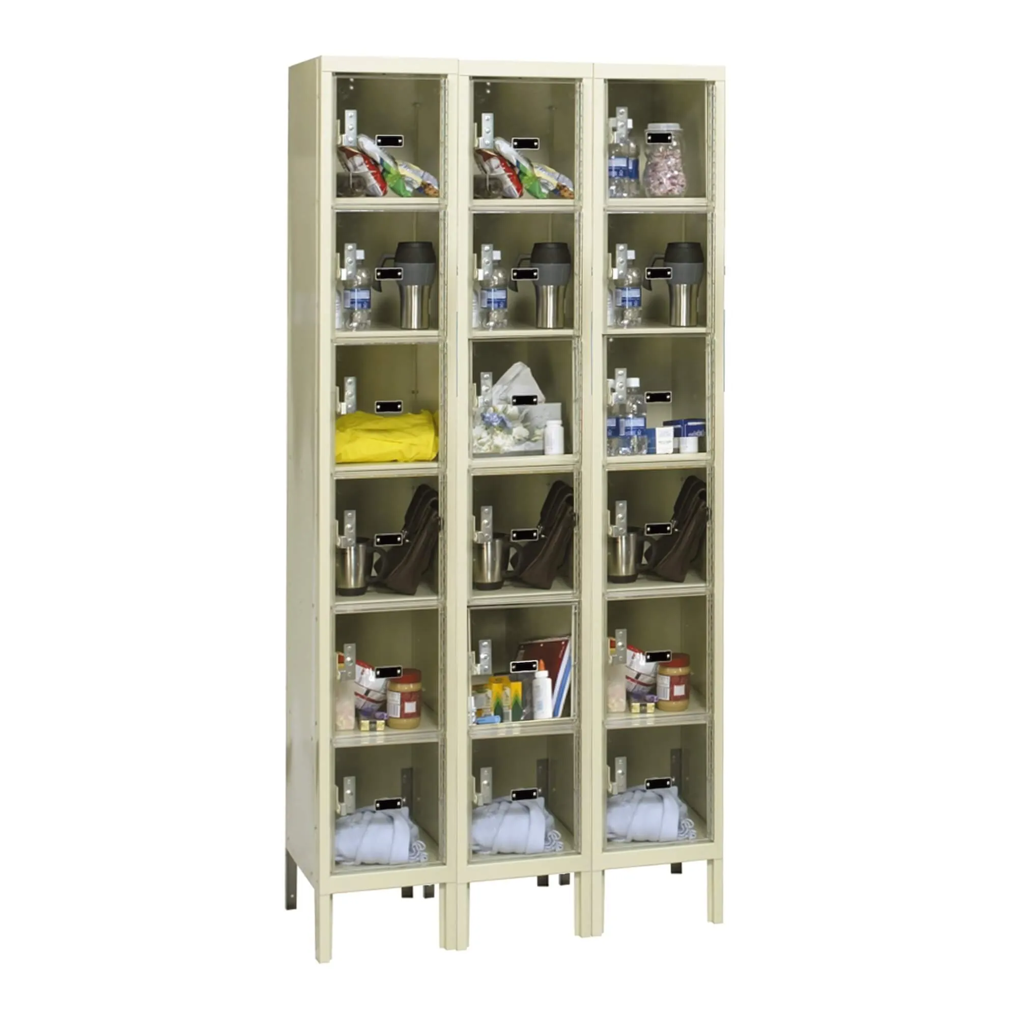 Safety-view doors, made of a single provide an unobstructed view of locker contents.