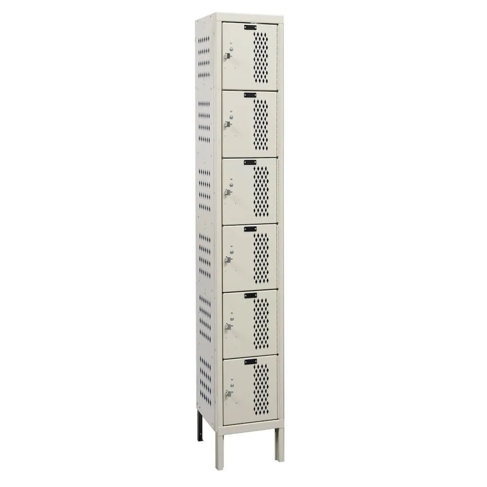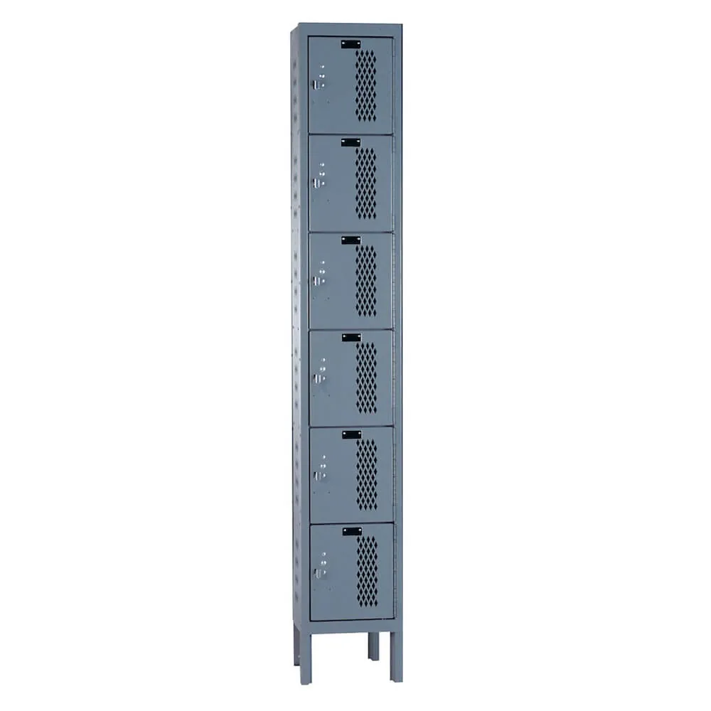 These one wide / six tall ventilated lockers allow air to circulate and inhibit the growth of damp, smells, or mildew, being perfect for spaces where equipment, clothing, or shoes are kept. These lockers are frequently utilized in schools, offices, gyms, sports facilities, and industrial environments where personal items may need to be let air out after use.