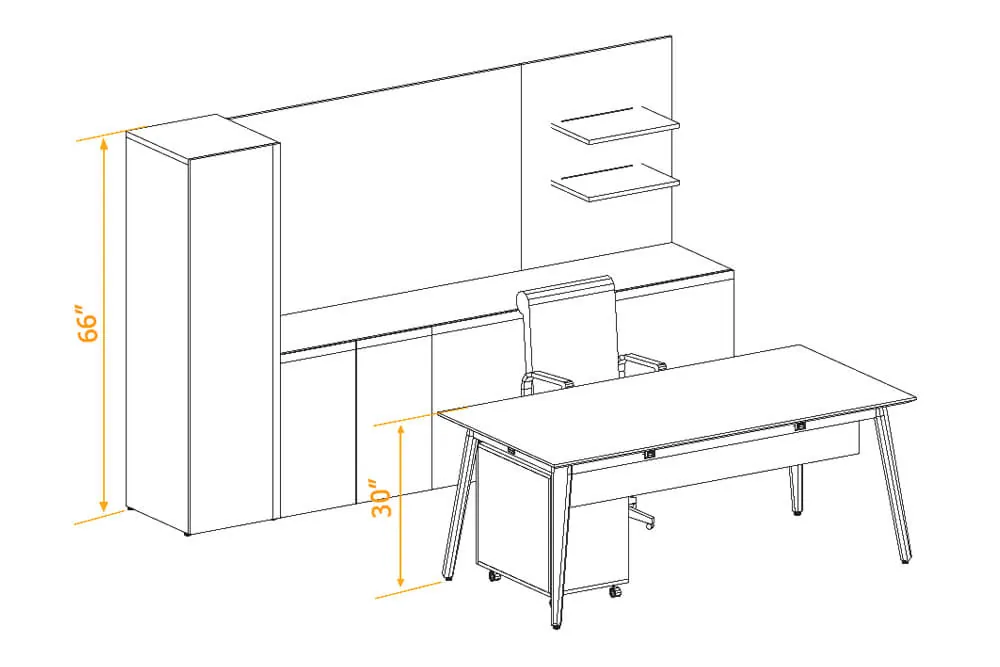 This sleek private office furniture design features a combination of the below elements:
