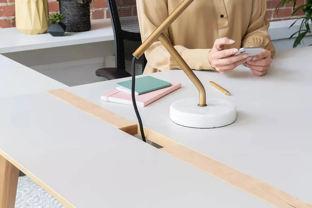 Please consider all factors influencing color perception when choosing the finishes. Natural or artificial light, time of day, and surrounding hues in your office environment, all can influence one's visual perception of color.